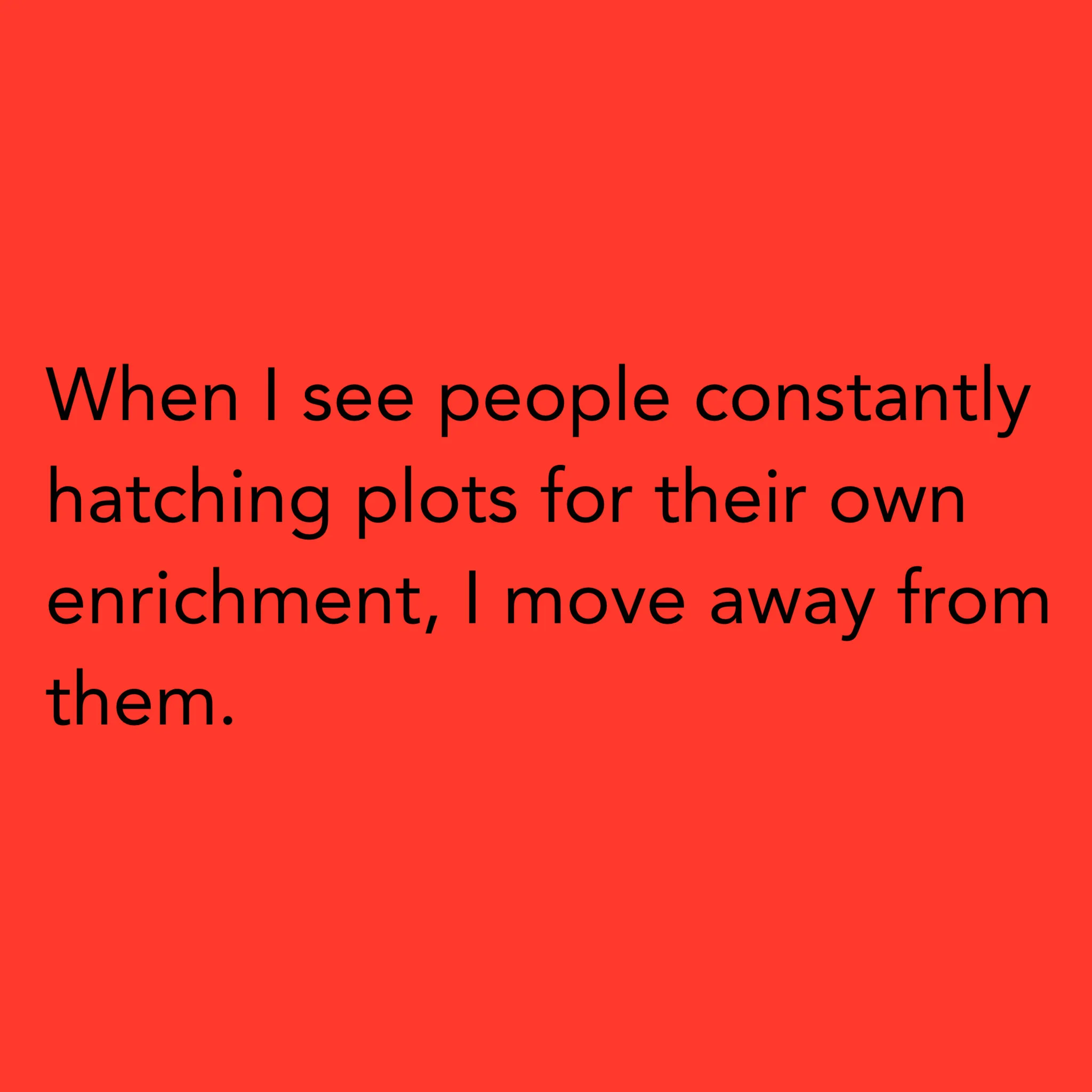 When I see people constantly hatching plots for their own enrichment, I move away from them.