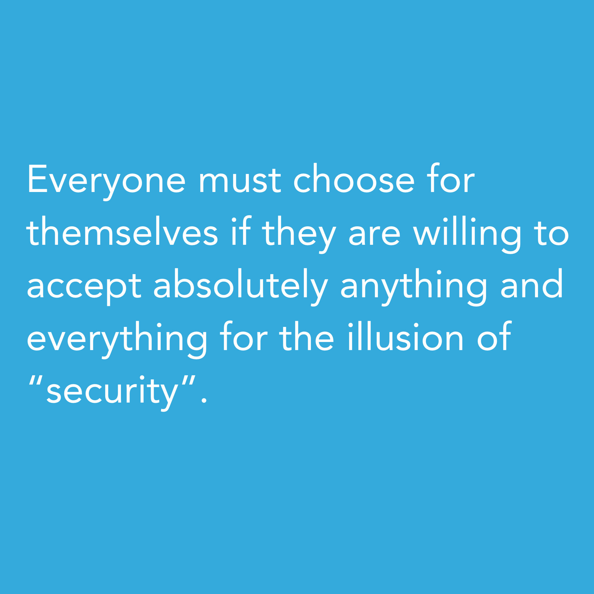 Everyone must choose for themselves if they are willing to accept absolutely anything and everything for the illusion of “security”.