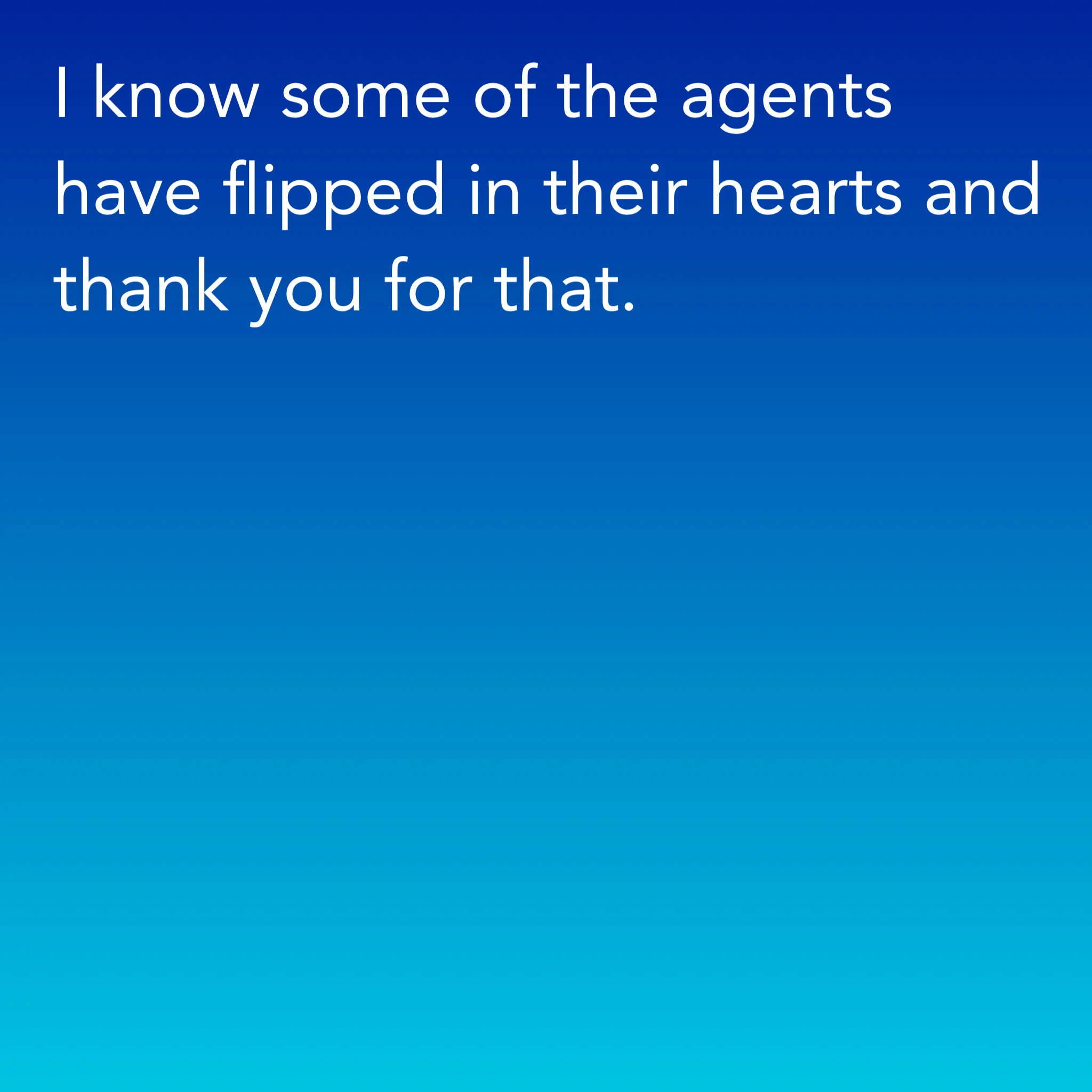I know some of the agents have flipped in their hearts and thank you for that.