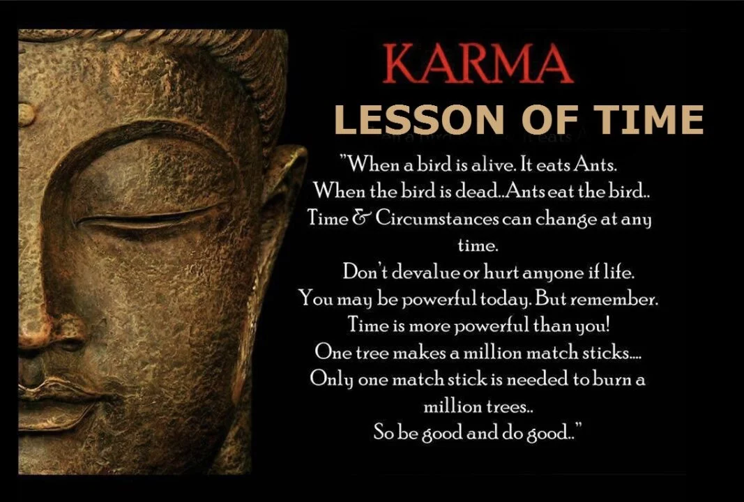 "When a bird is alive it eats Ants. When the bird is dead ants eat the bird. Time & Circumstances can change at any time. Don't devalue or hurt anyone in life. You may be powerful today. But remember. Time is more powerful than you! One tree makes a million match sticks. Only one match stick is needed to burn a million trees. So be good and do good."