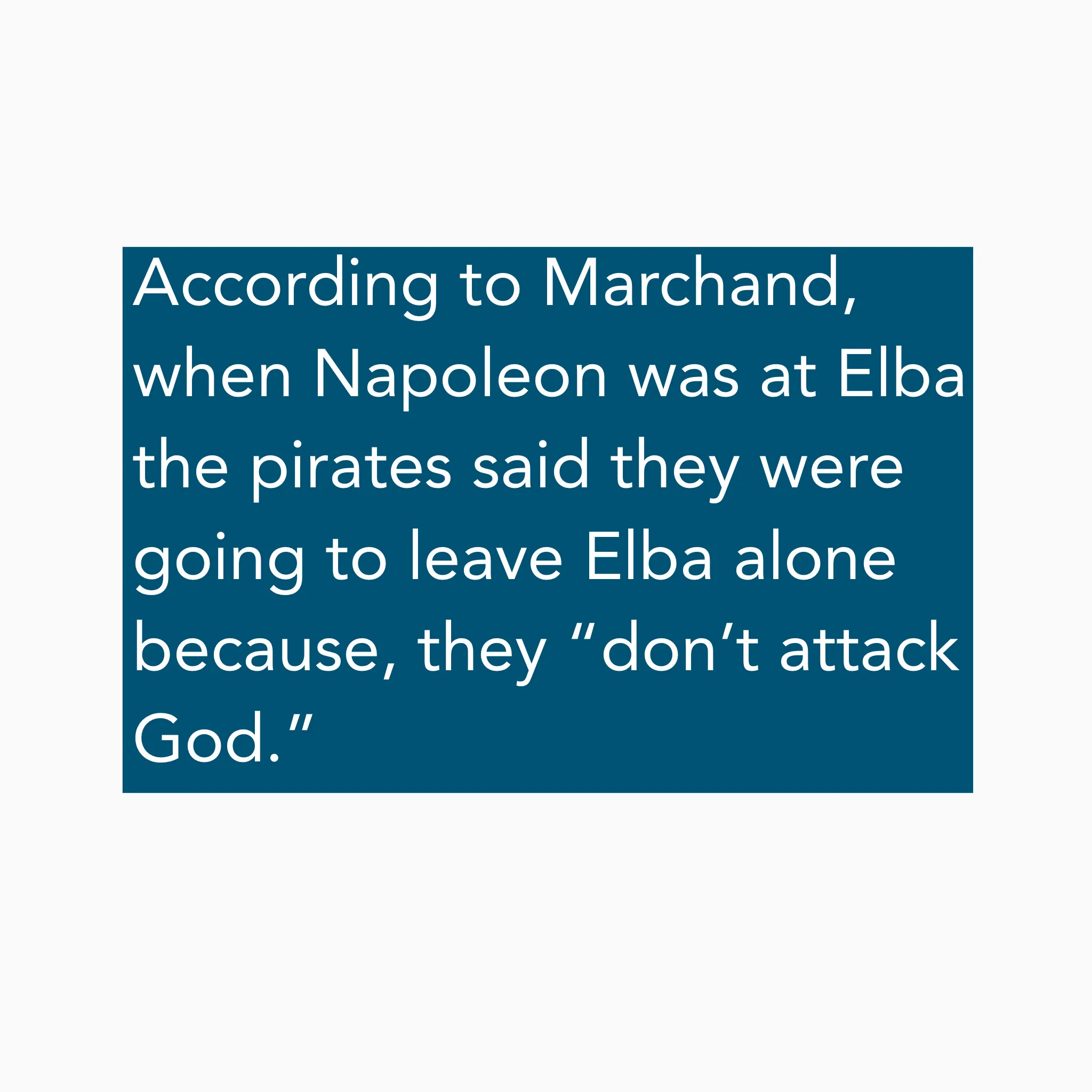 According to Marchand, when Napoleon was at Elba the pirates said they were going to leave Elba alone because, they “don’t attack God.”
