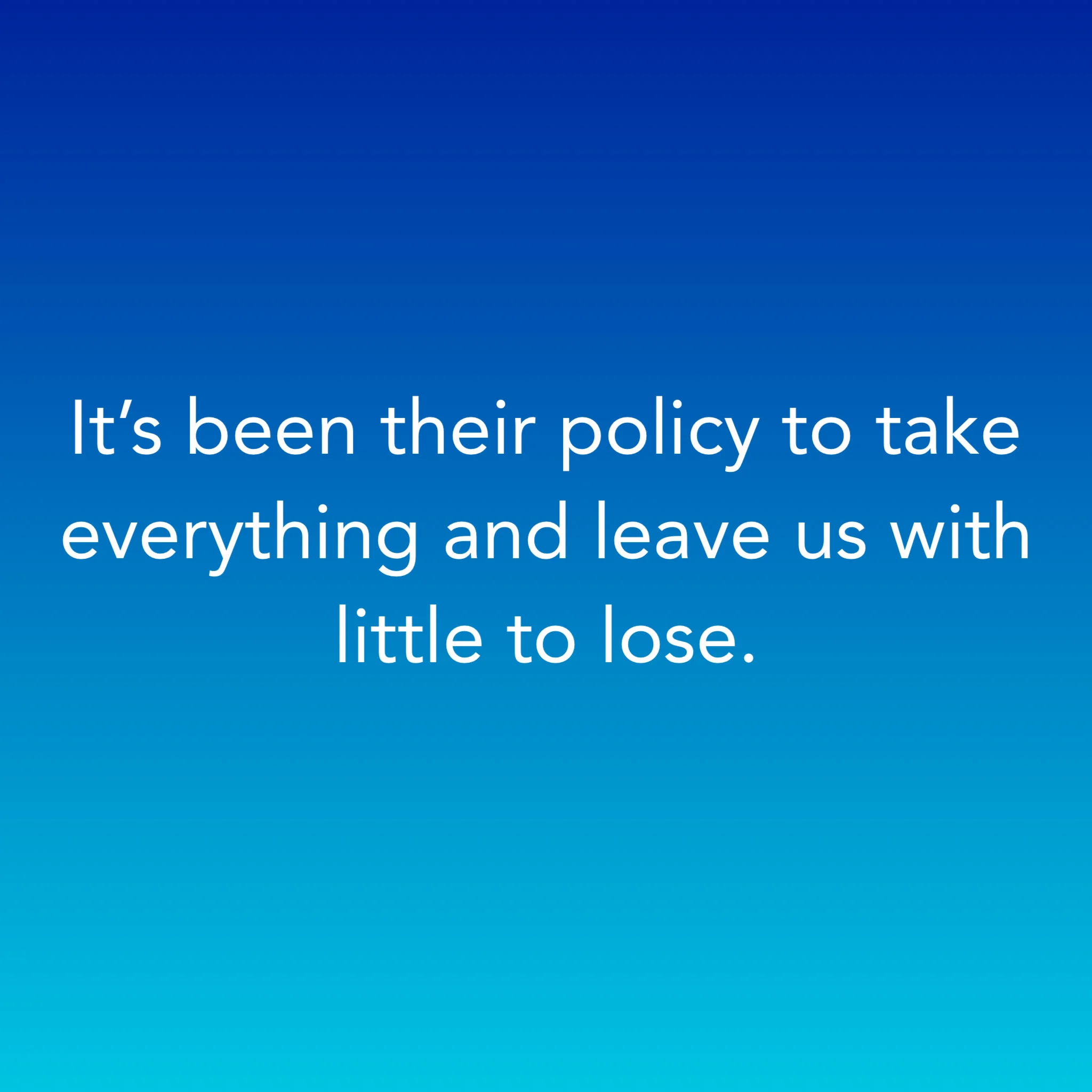It’s been their policy to take everything and leave us with little to lose.
