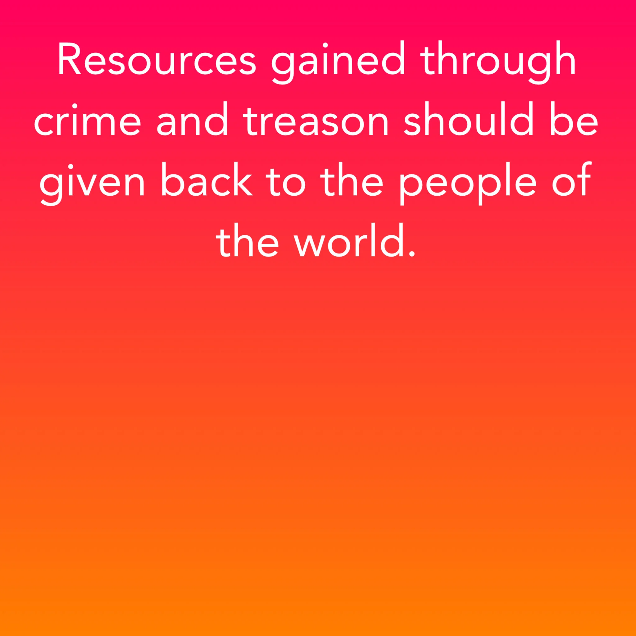 Resources gained through crime and treason should be given back to the people of the world.