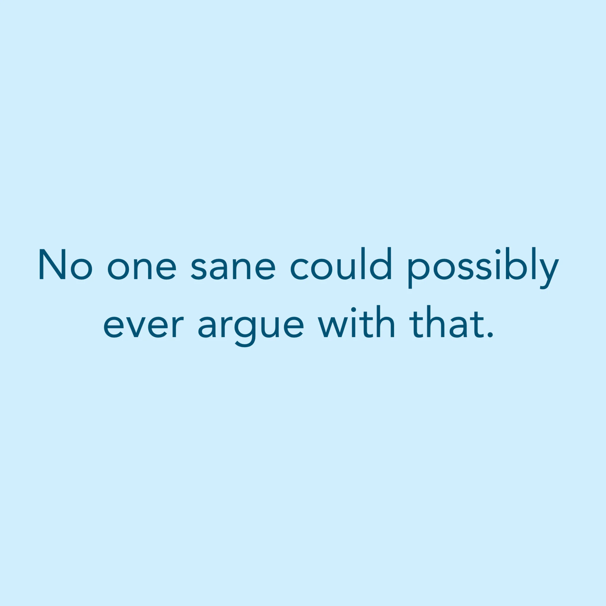 No one sane could possibly ever argue with that.