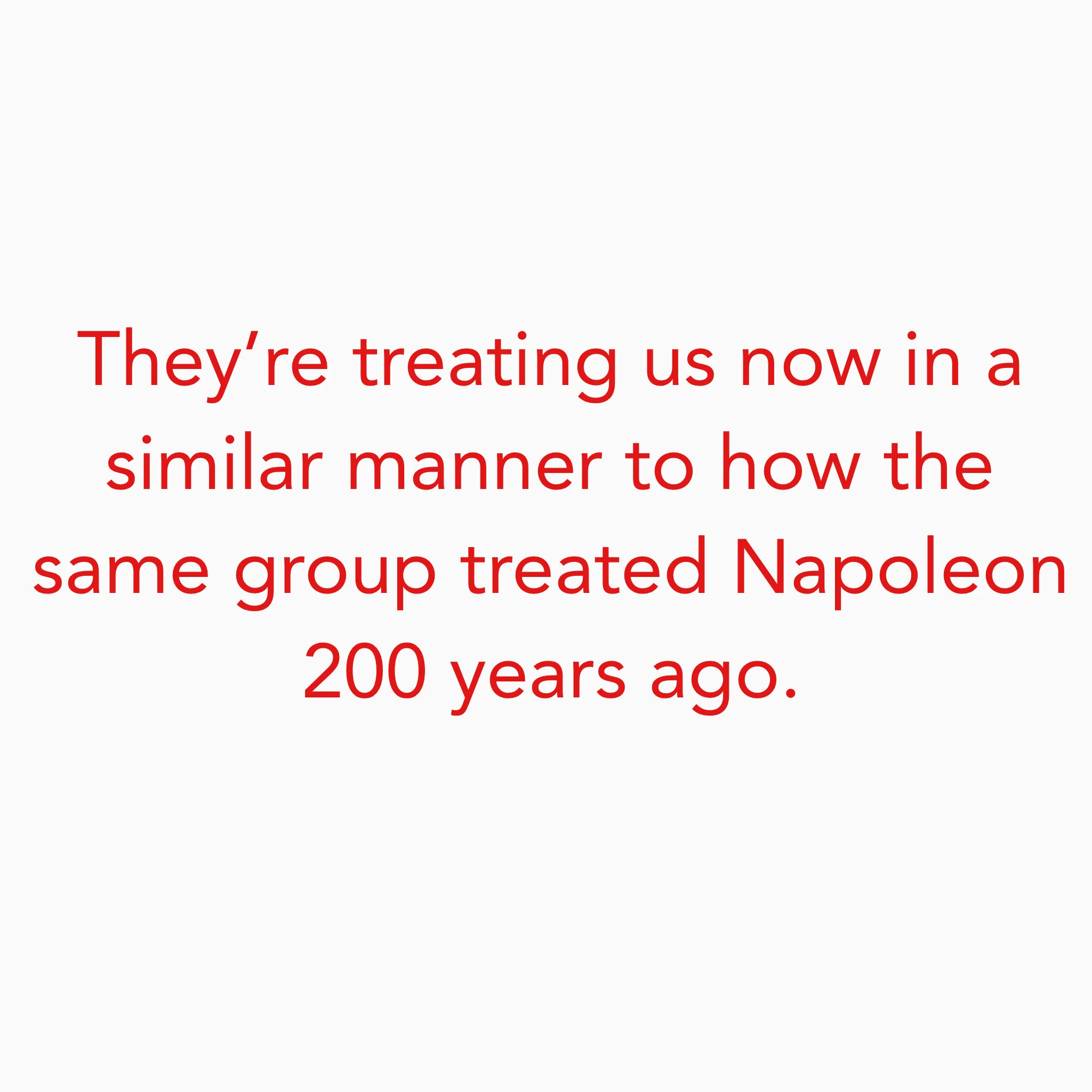 They’re treating us now in a similar manner to how the same group treated Napoleon 200 years ago.