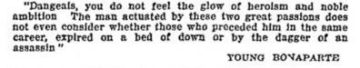 "Dangeais, you do not feel the glow of herolsm and noble ambition. The man actuated by these two great passlons does not even consider whether those who preceded him in the same career, explred on a bed of down or by the dagger of an assassin "