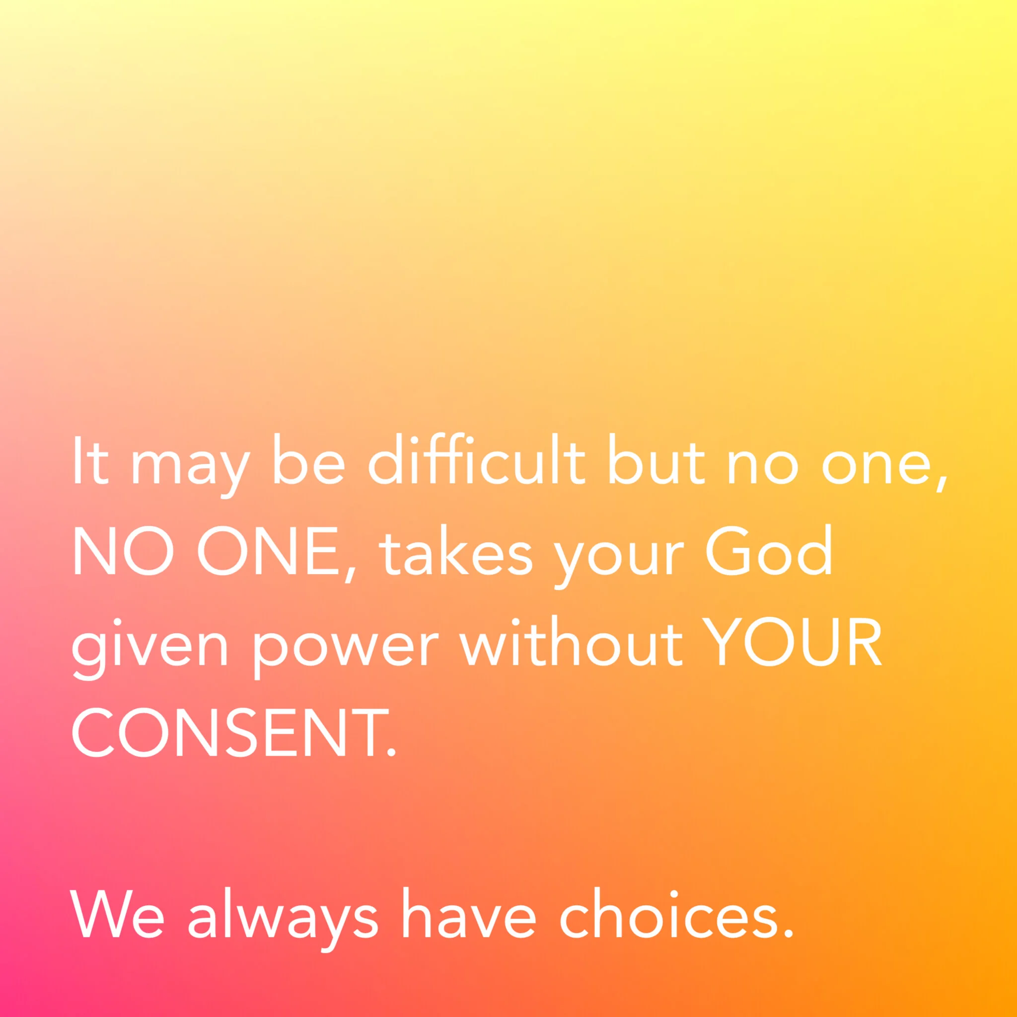It may be difficult but no one, NO ONE, takes your God given power without YOUR CONSENT.