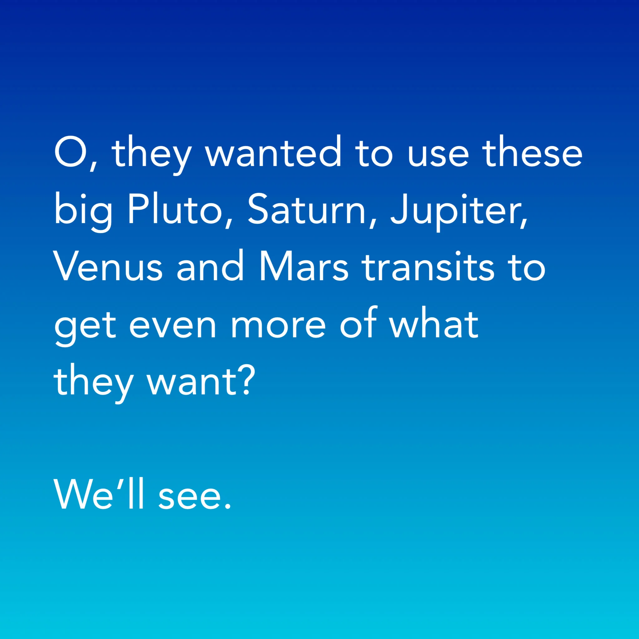 O, they wanted to use these big Pluto, Saturn, Jupiter, Venus and Mars transits to get even more of what they want?