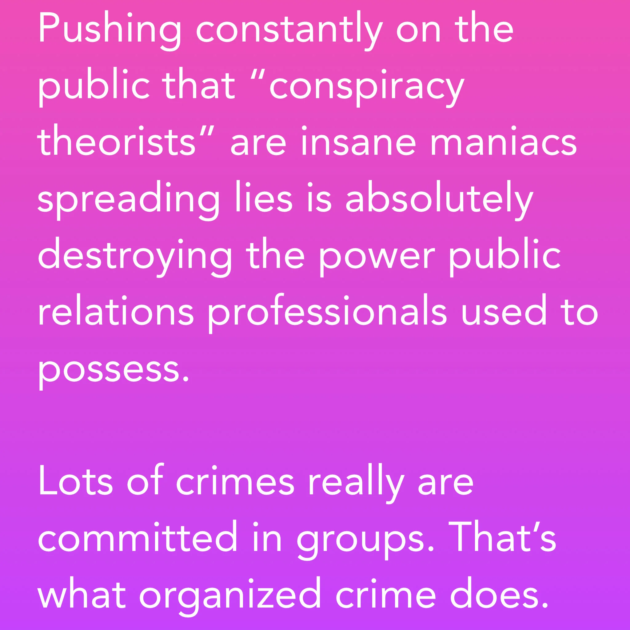 Pushing constantly on the public that “conspiracy theorists” are insane maniacs spreading lies is absolutely destroying the power public relations professionals used to possess.