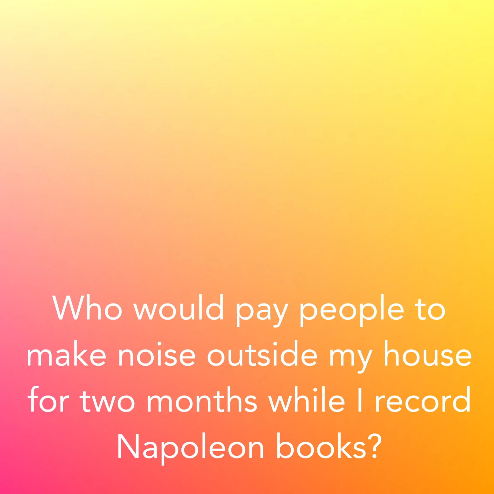Who would pay people to make noise outside my house for two months while I record Napoleon books?