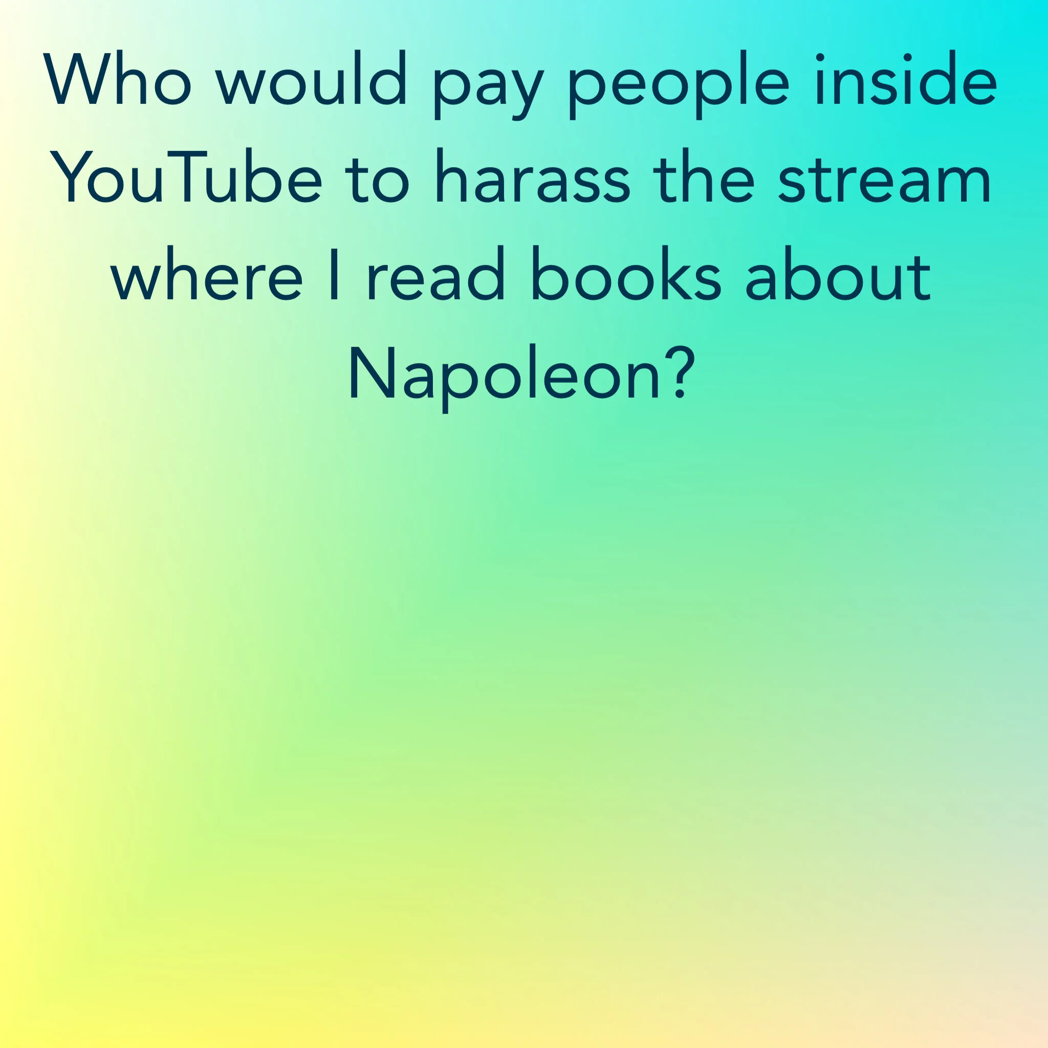 Who would pay people inside YouTube to harass the stream where I read books about Napoleon?