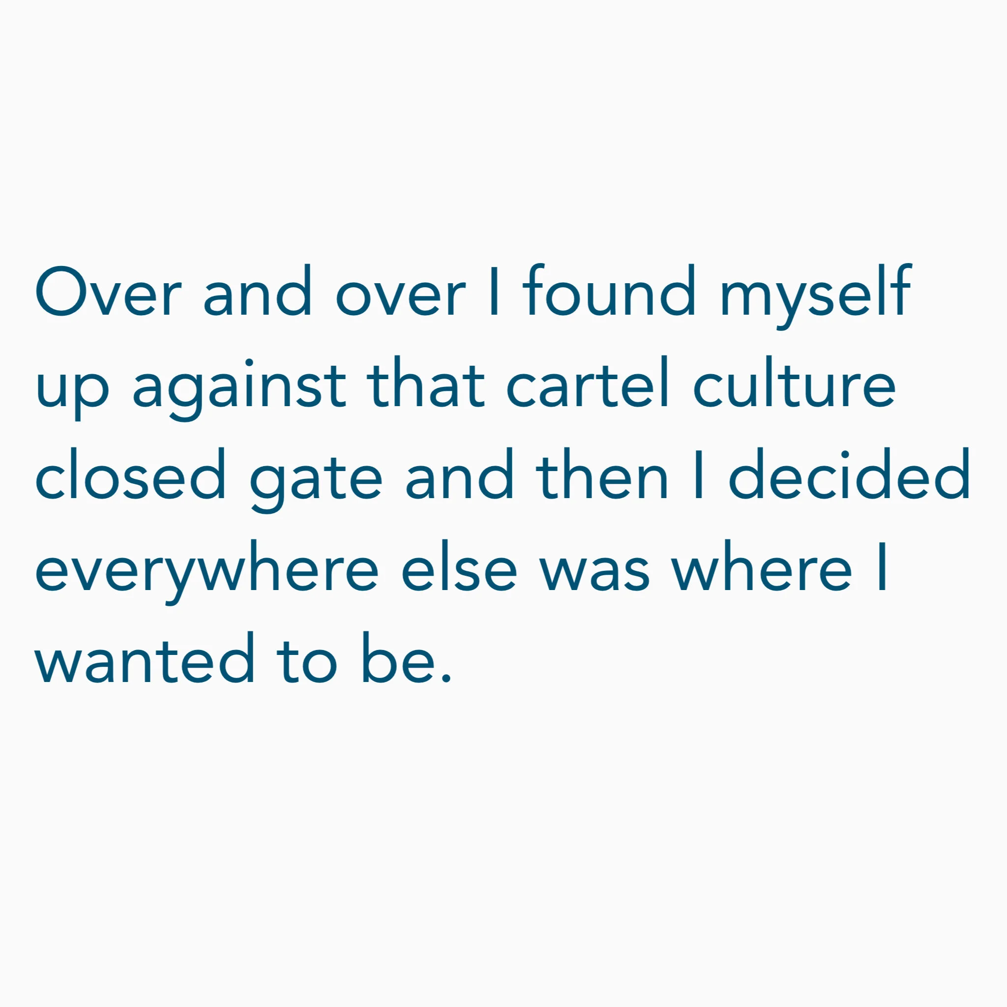 Over and over I found myself up against that closed cartel culture gate and then I decided everywhere else was where I wanted to be.