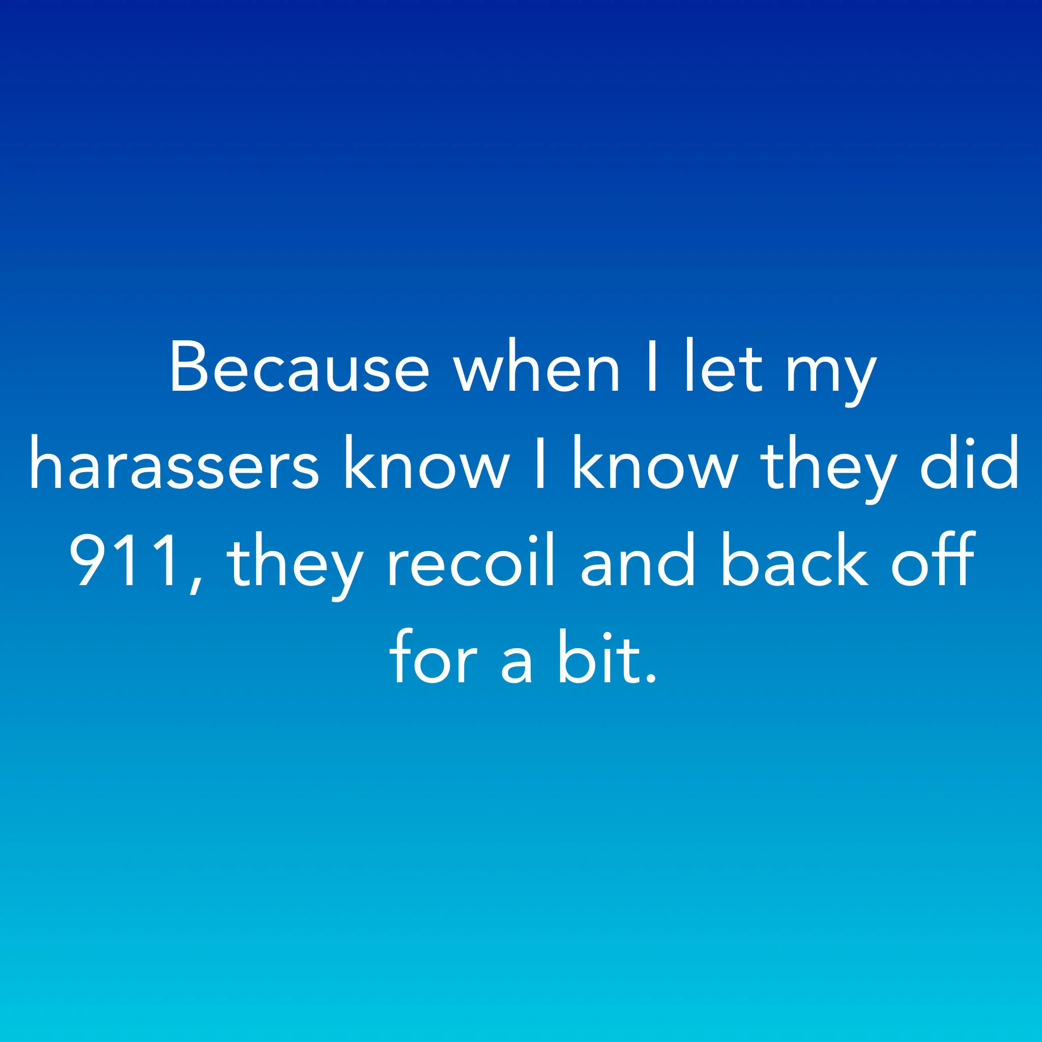 Because when I let my harassers know I know they did 911, they recoil and back off for a bit.