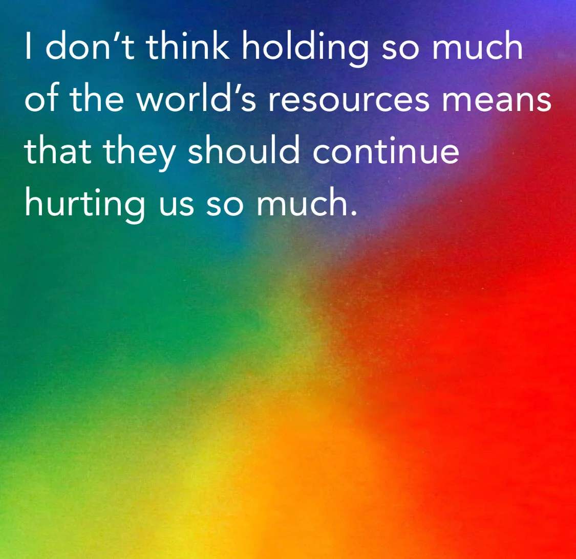 I don’t think holding so much of the world’s resources means that they should continue hurting us so much.