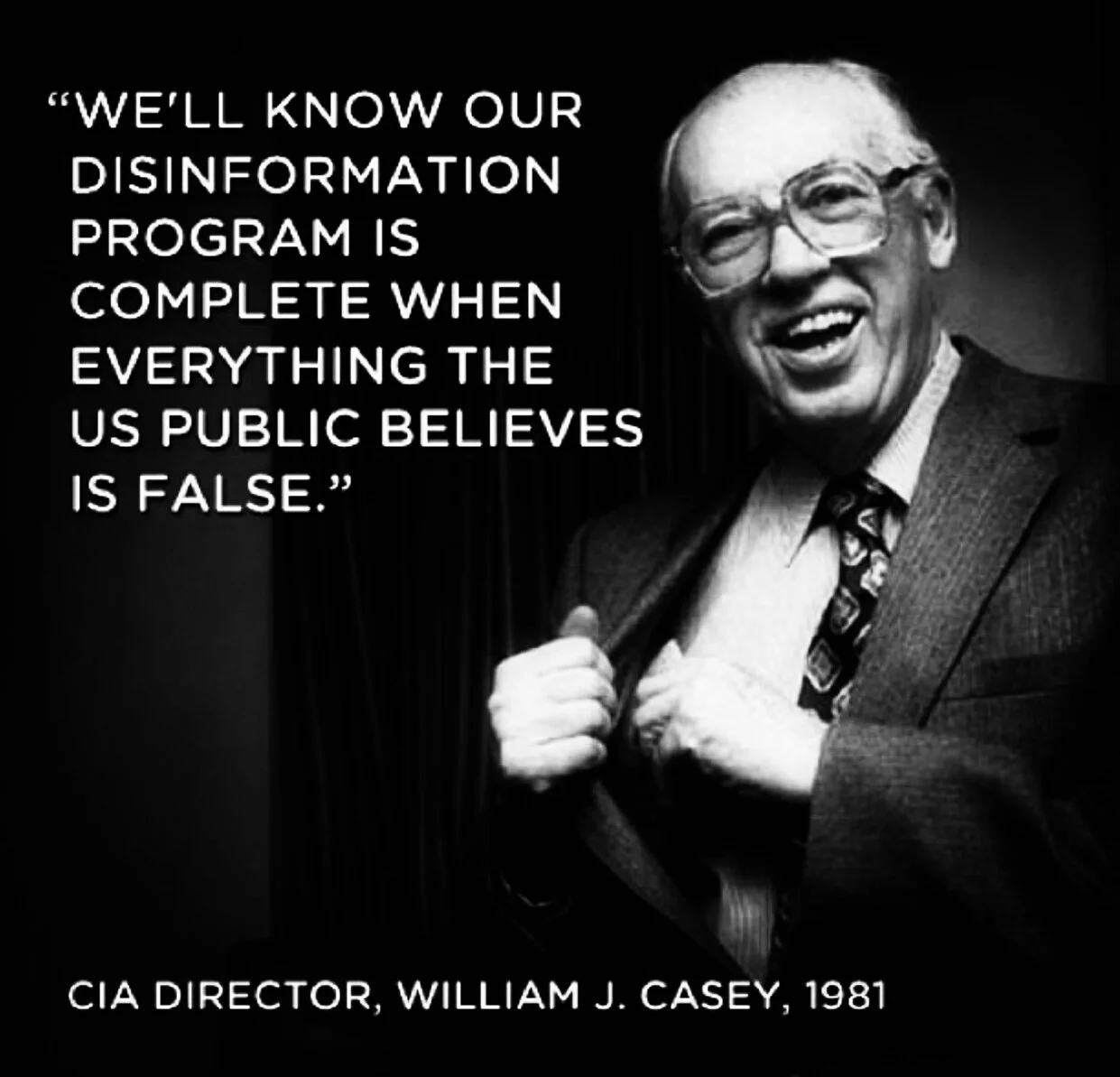 "WE'LL KNOW OUR DISINFORMATION PROGRAM IS COMPLETE WHEN EVERYTHING THE US PUBLIC BELIEVES IS FALSE."