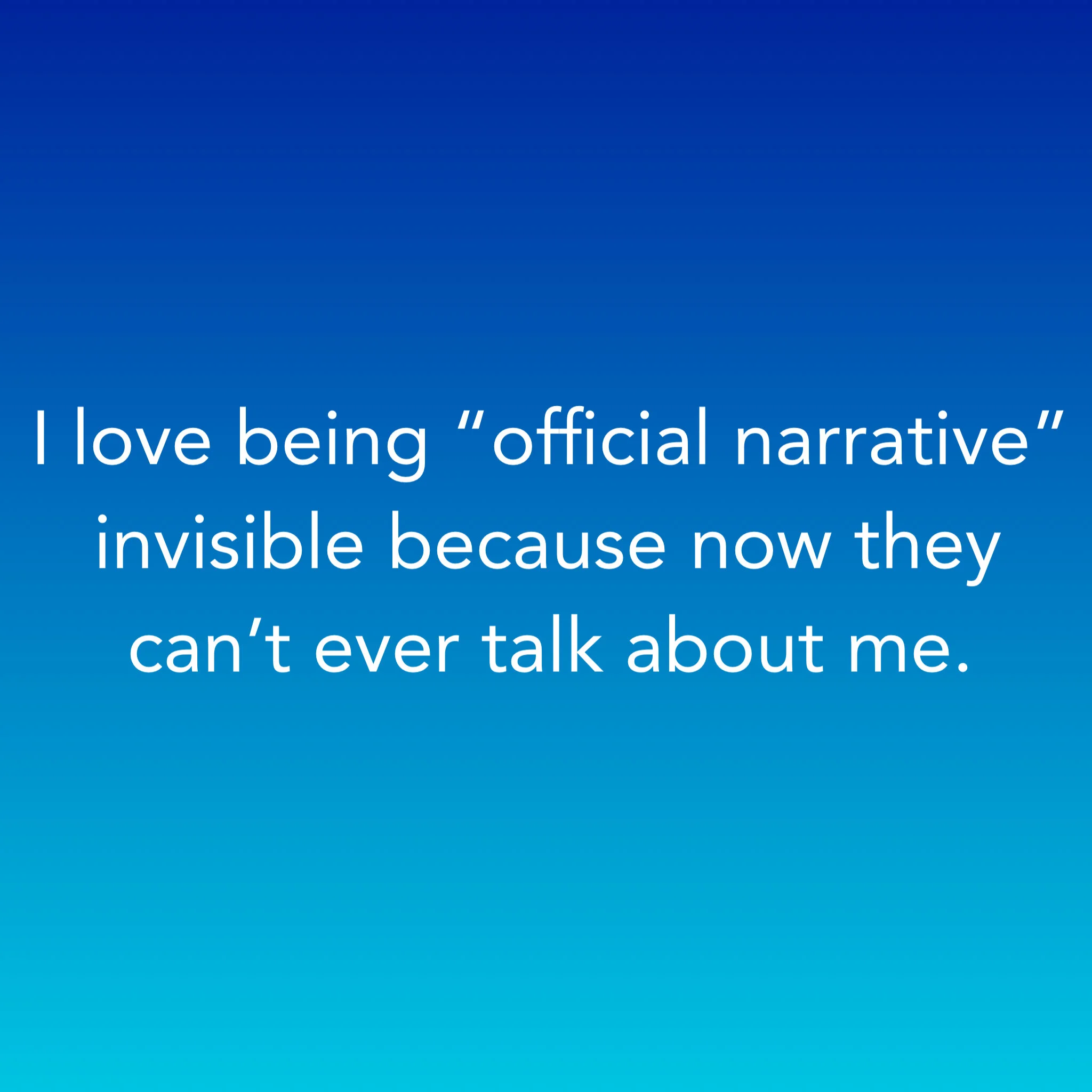 I love being “official narrative” invisible because now they can’t ever talk about me.