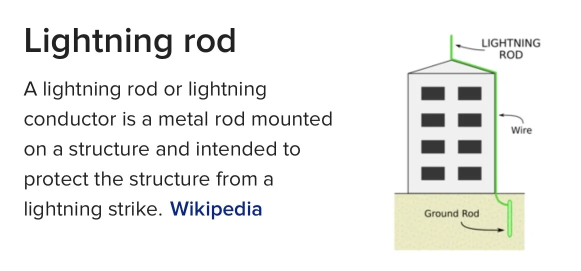 A lightning rod or lightning conductor is a metal rod mounted Wire on a structure and intended to protect the structure from a lightning strike. The link is here.