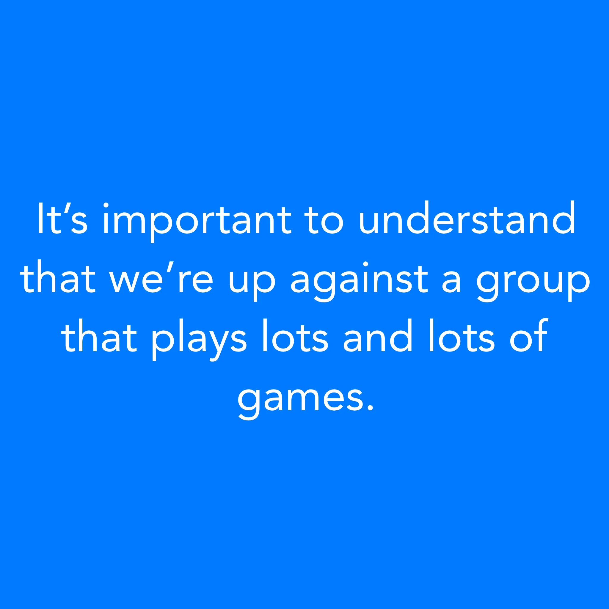 It’s important to understand that we’re up against a group that plays lots and lots of games.