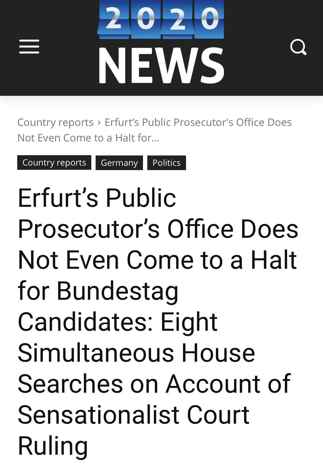 Erfurt’s Public Prosecutor’s Office Does Not Even Come to a Halt for Bundestag Candidates: Eight Simultaneous House Searches on Account of Sensationalist Court Ruling