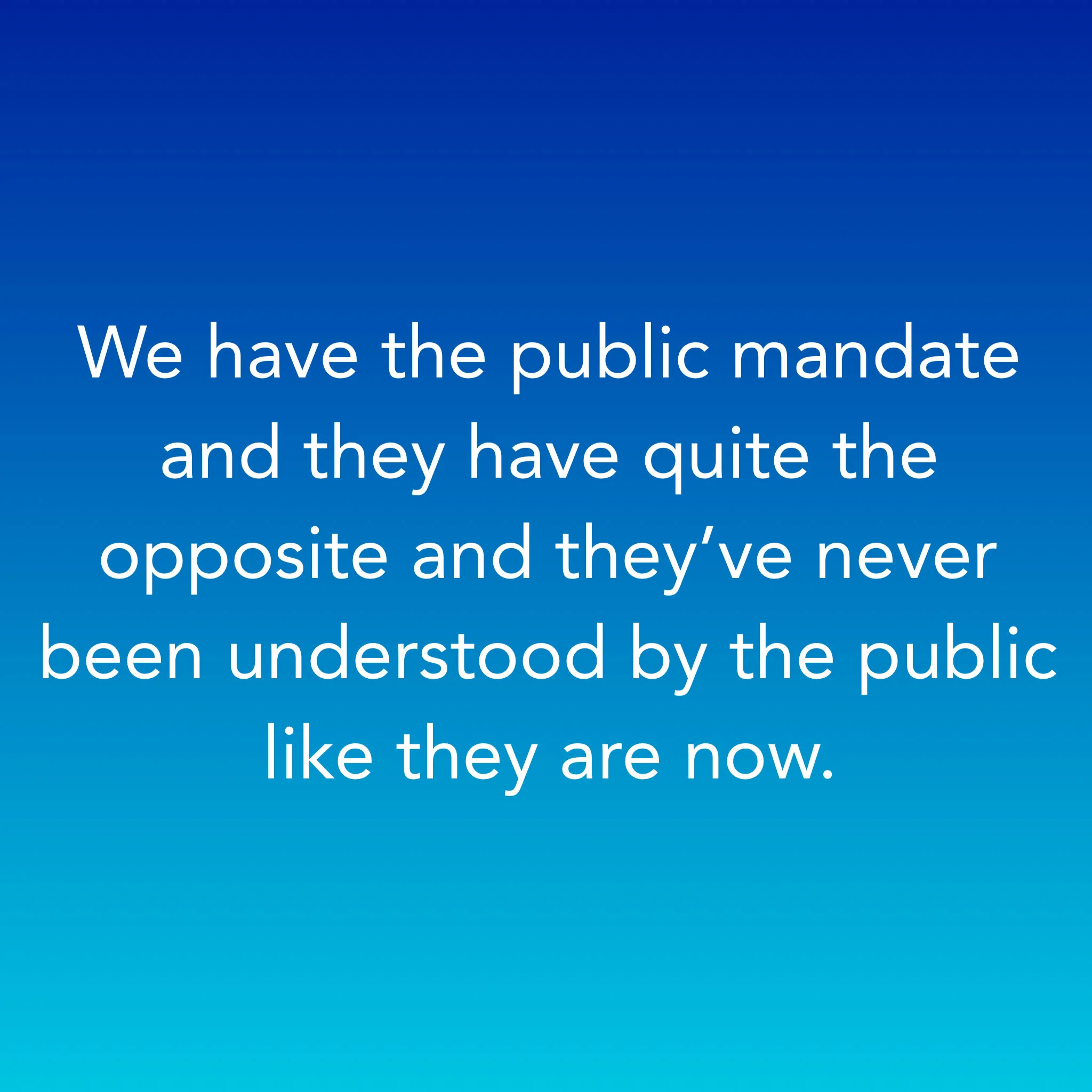 We have the public mandate and they have quite the opposite and they’ve never been understood by the public like they are now.