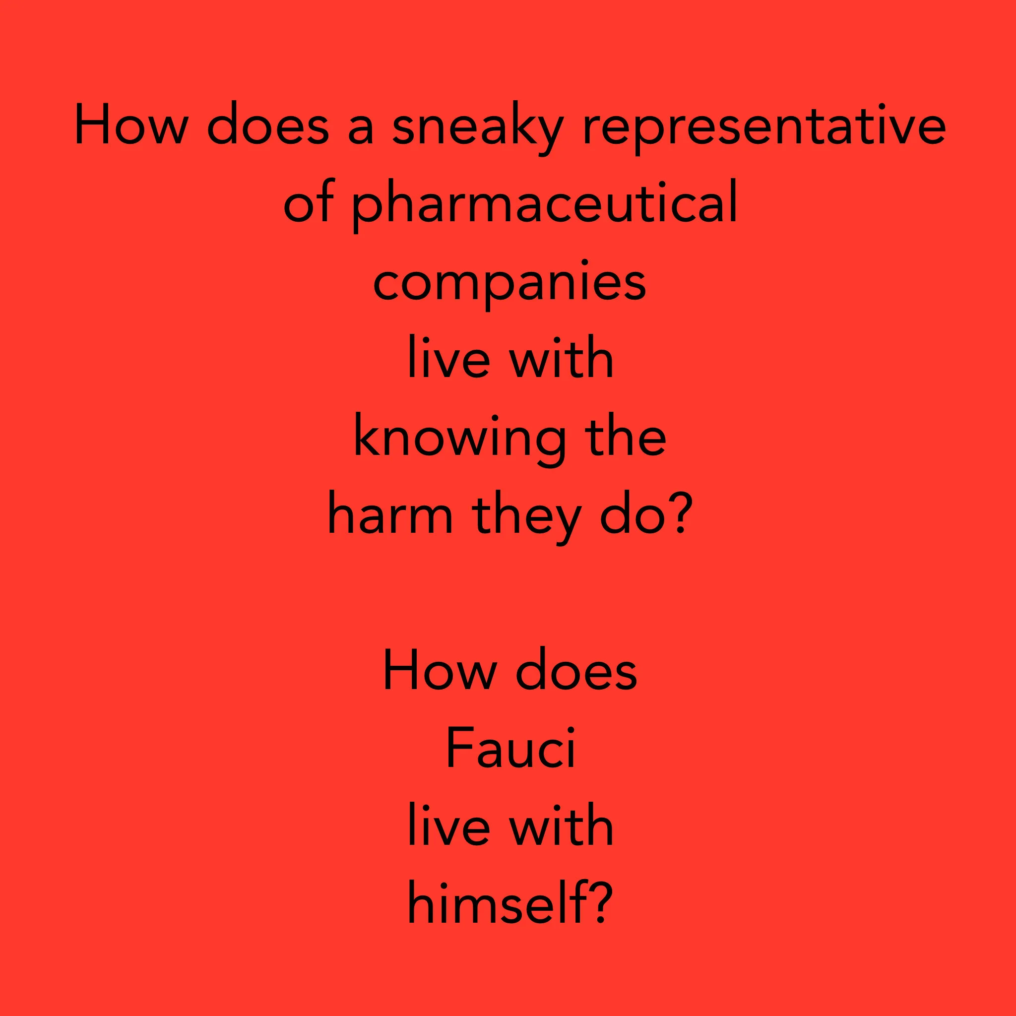 How does a sneaky representative of pharmaceutical companies live knowing the harm they do?