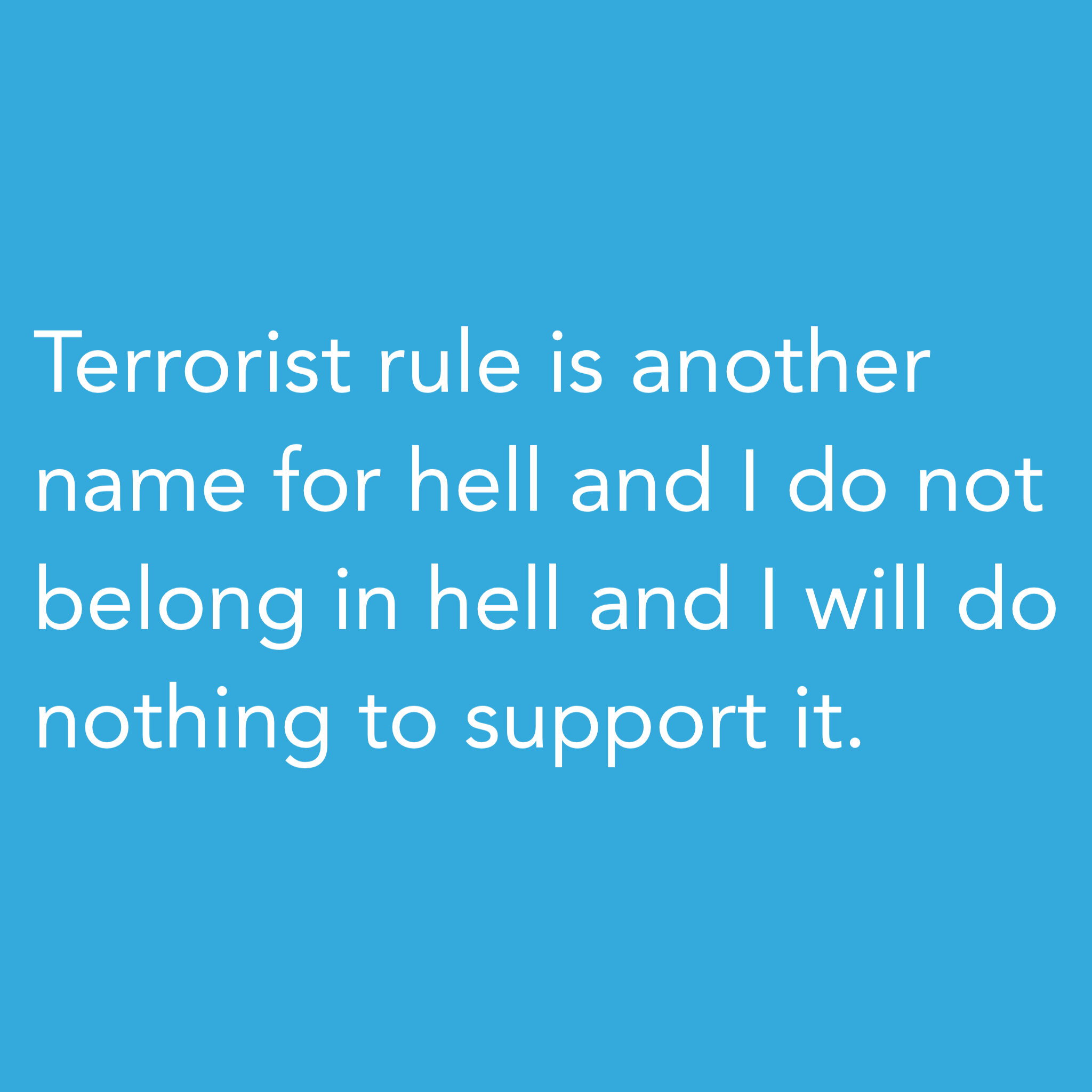 Terrorist rule is another name for hell and I do not belong in hell and I will do nothing to support it.