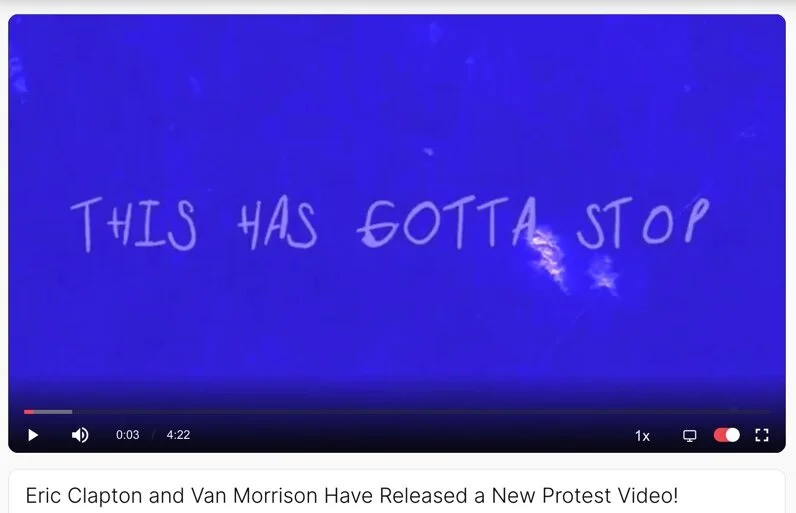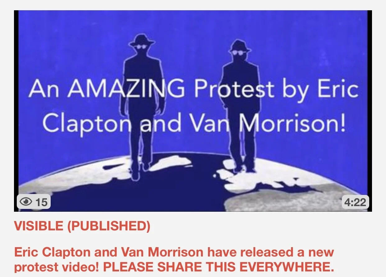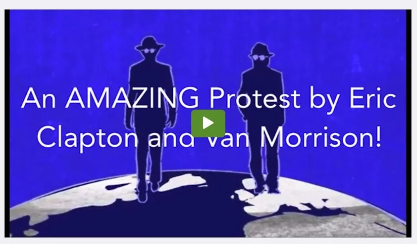 I hope this whole world becomes a protest art project. I’m so proud to stand with Eric Clapton and Van Morrison! Two real geniuses of courage. I’m always praying for Mr. Clapton to feel better. This Mengele style human experiment needs to end! It’s wrong and amoral beyond comprehension.