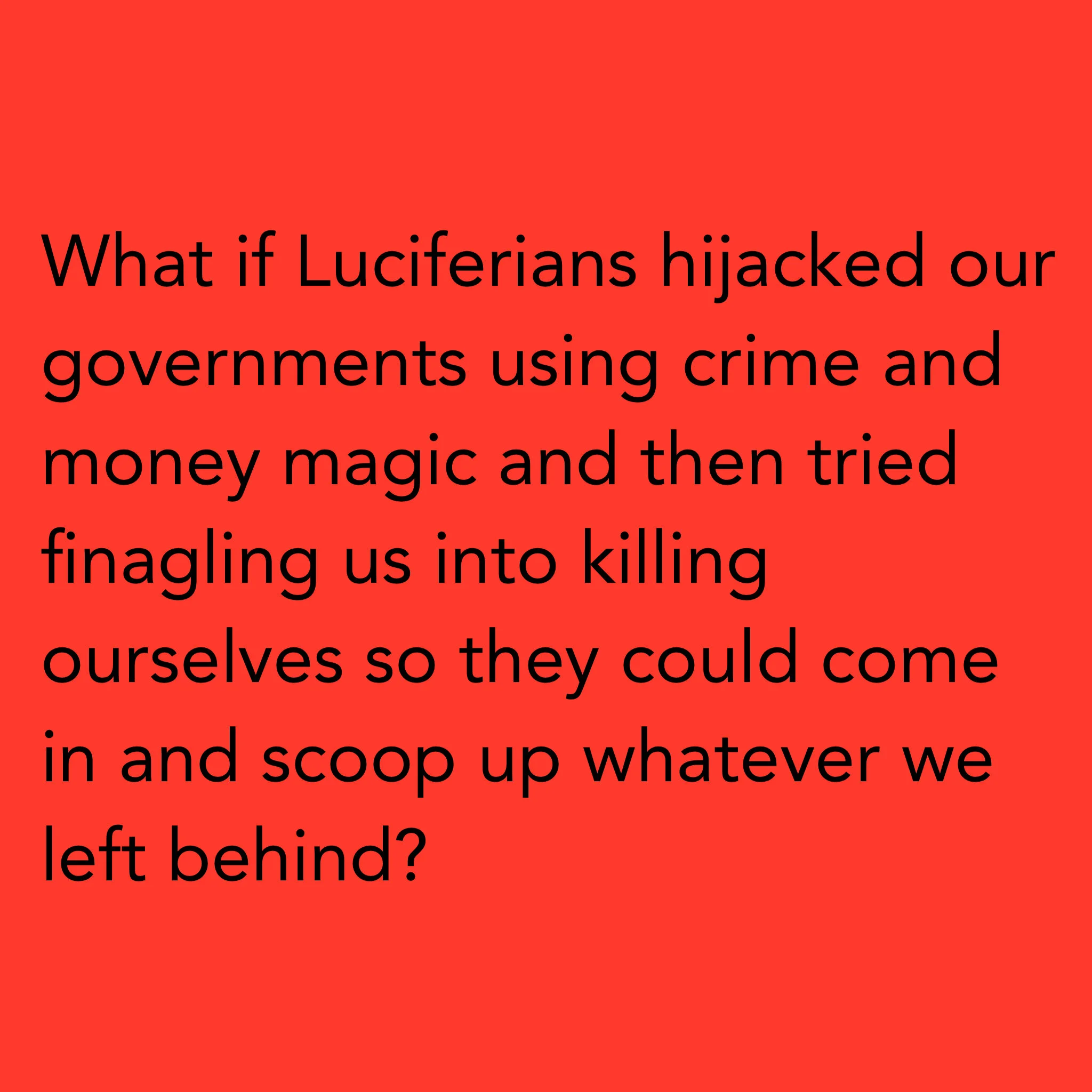 What if Luciferians hijacked our governments using crime and money magic and then tried finagling us into killing ourselves so they could come in and scoop up whatever we left behind?