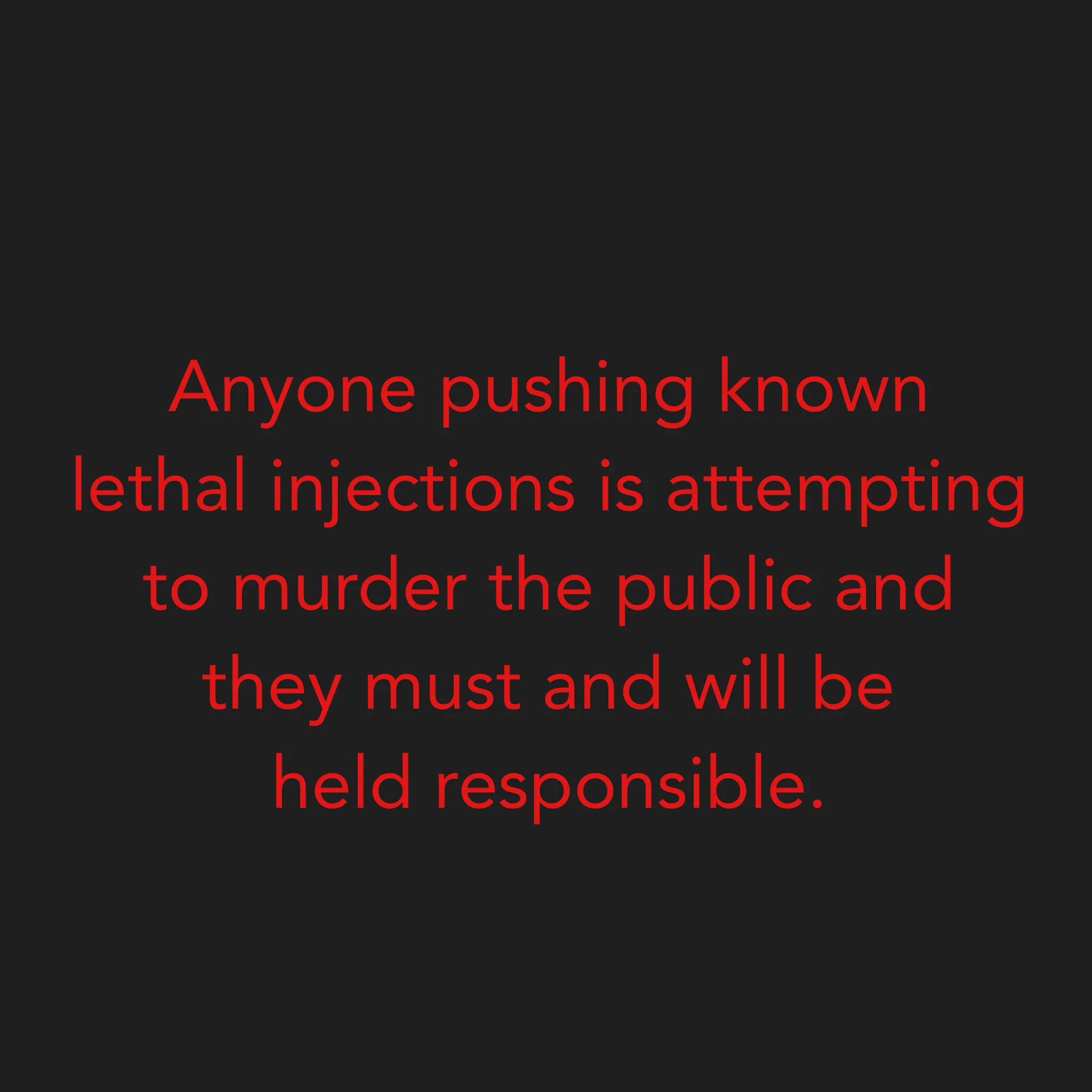 Anyone pushing known lethal injections is attempting to murder the public and they must and will be held responsible.