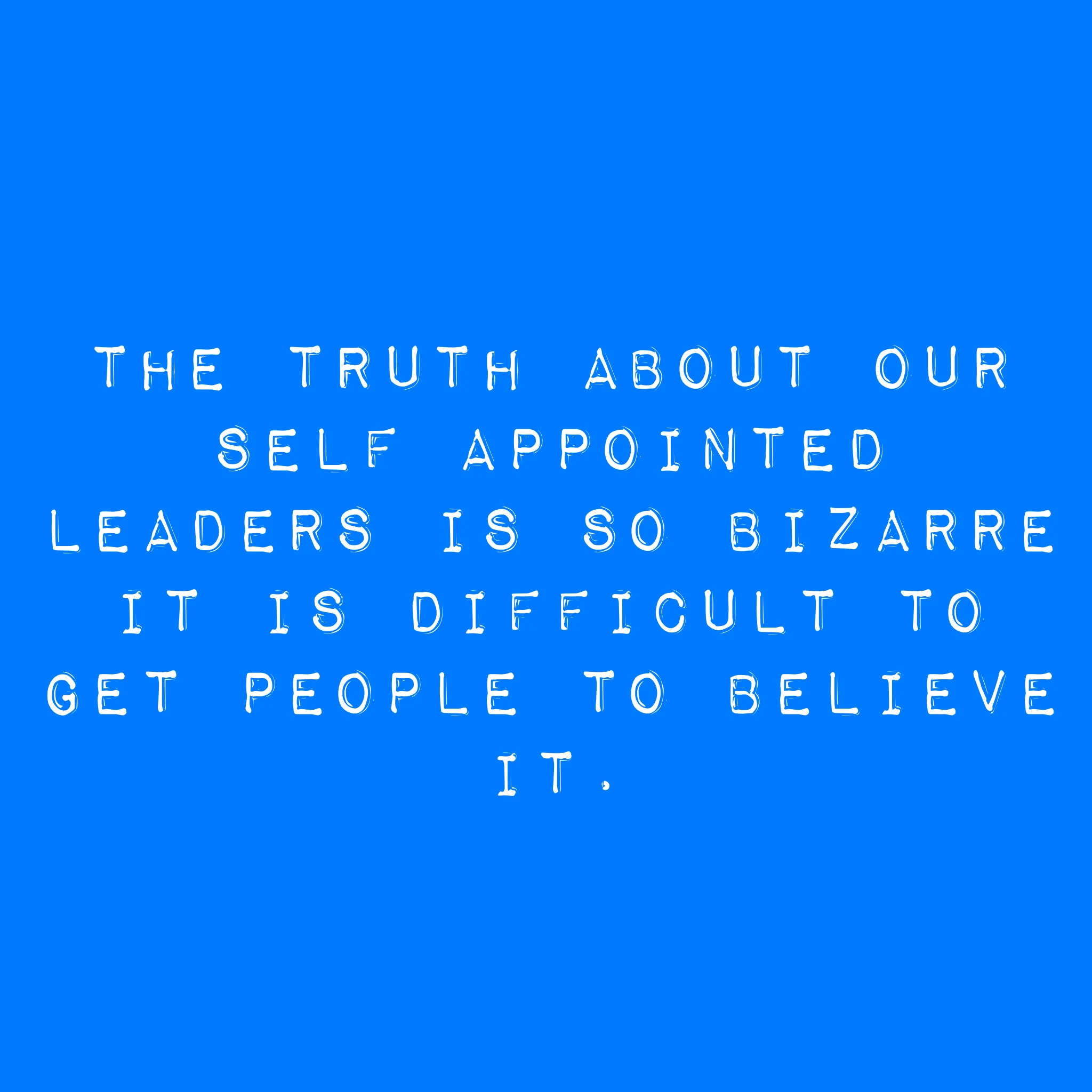 The truth about our self appointed leaders is so bizarre it is difficult to get people to believe it.