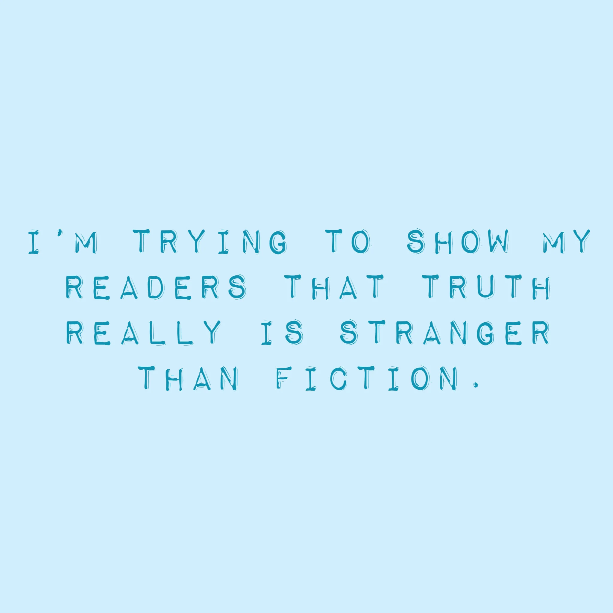 I’m trying to show my readers that truth really is stranger than fiction.