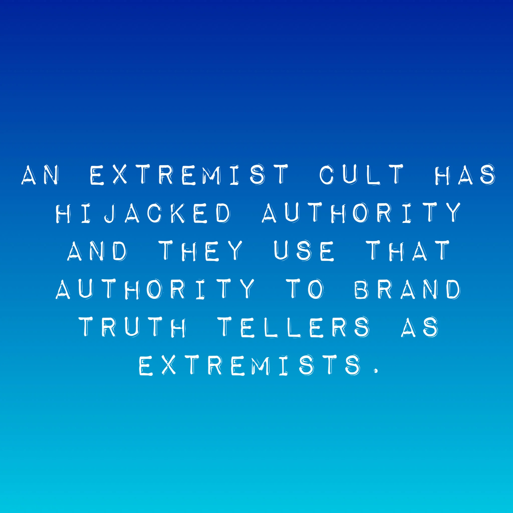 An extremist cult has hijacked authority and they use that authority to brand truth tellers as extremists.