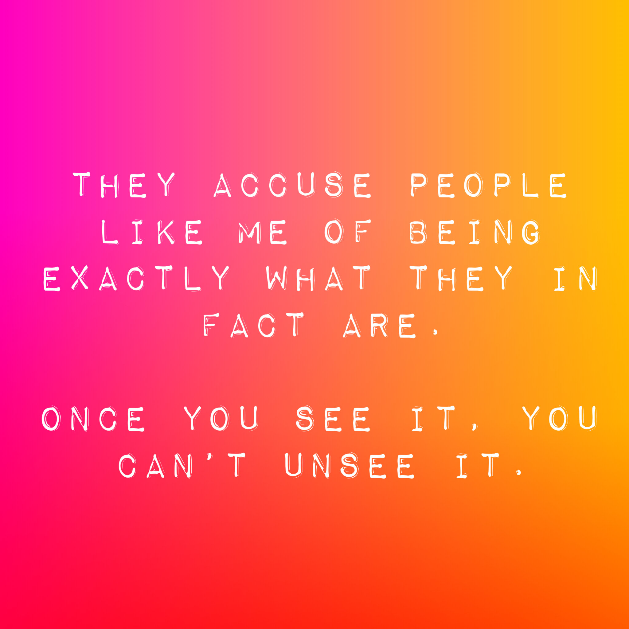 They accuse people like me of being exactly what they in fact are.