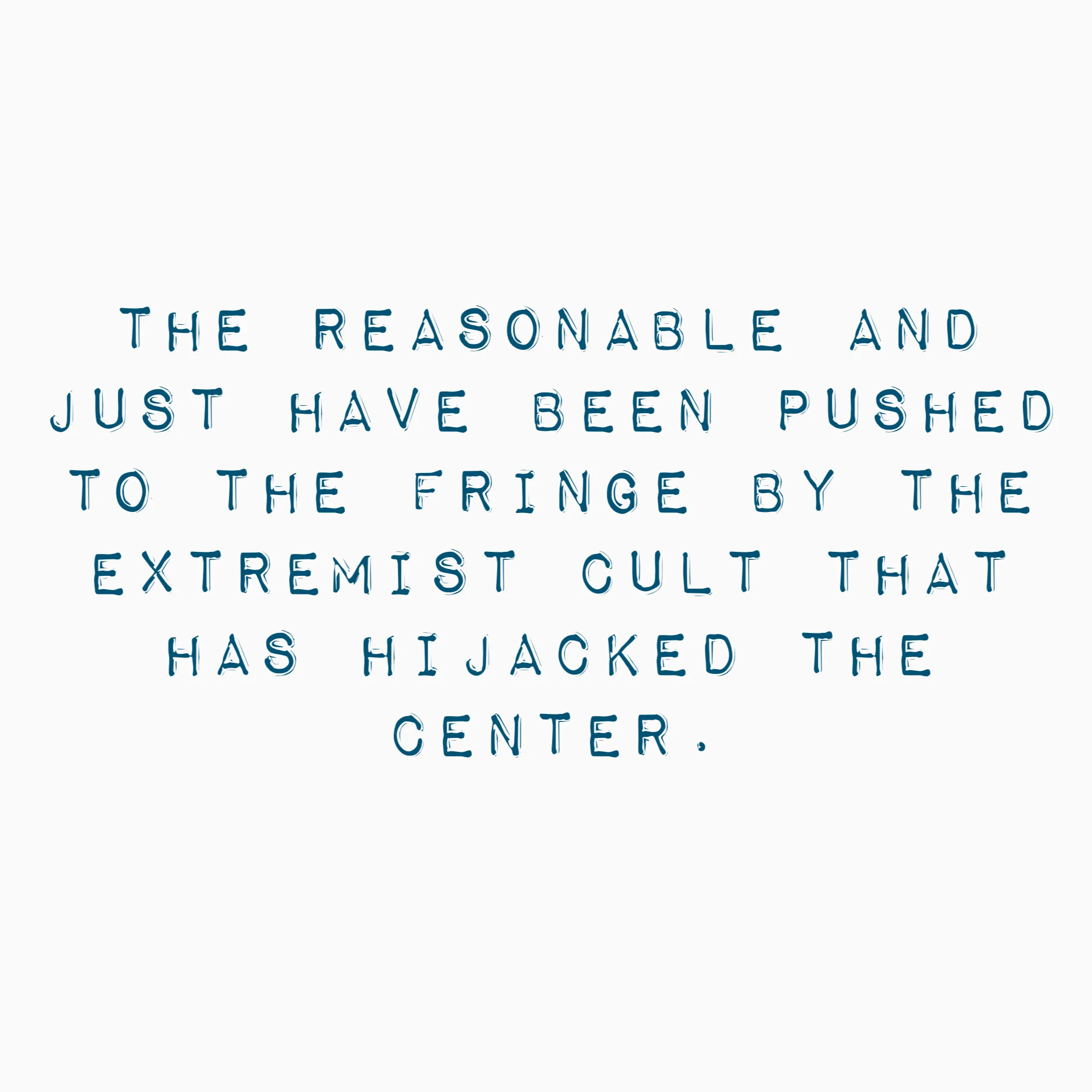 The reasonable and just have been pushed to the fringe by the extremist cult that has hijacked the center.