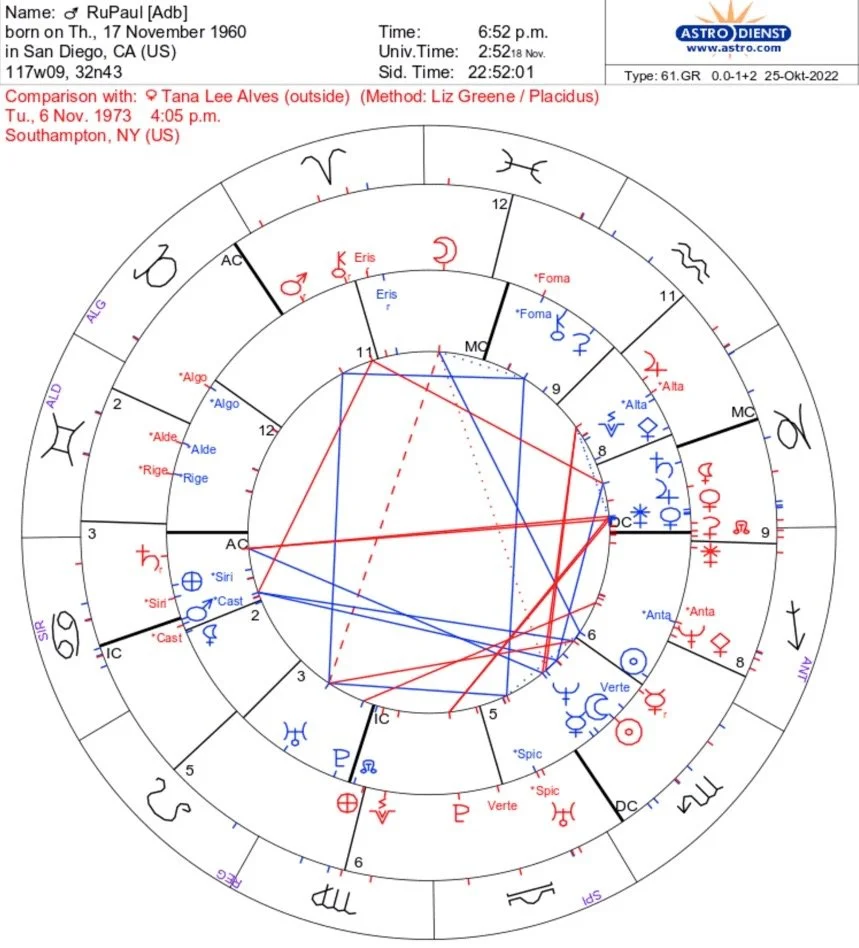 I have been blown away by the kindness that has been directed my way from RuPaul and all I can do is to express my deep gratitude. I have been put into captivity by a massive lie and a very crooked regime and Ru has the heart to not just carry on with his life while this is being so unjustly done to me. He has a lot to lose and he owes me absolutely nothing. Ru is really someone with empathy and feelings - for me in particular. This is amazingly demonstrated in our synastry chart!