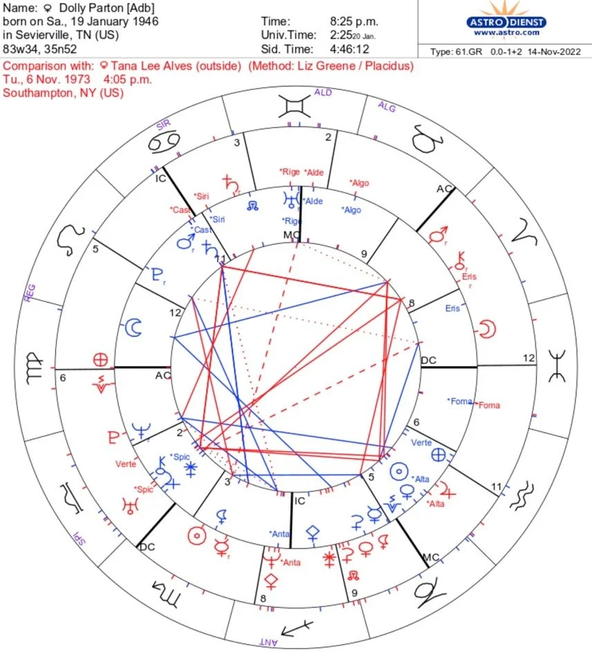 Dolly and I have a few things in common. We’re both pretty feisty and ambitious and good hearted. Will this be reflected in our combined astrological charts?