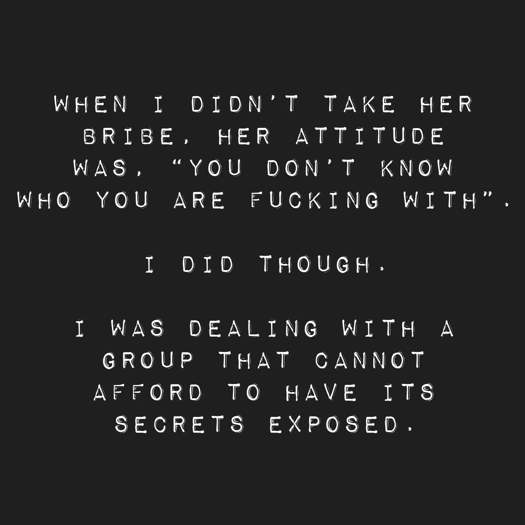 Hopefully the secrets holding us captive will keep pouring out - with or without me. A blackmail empire falls when its blackmail comes tumbling out.