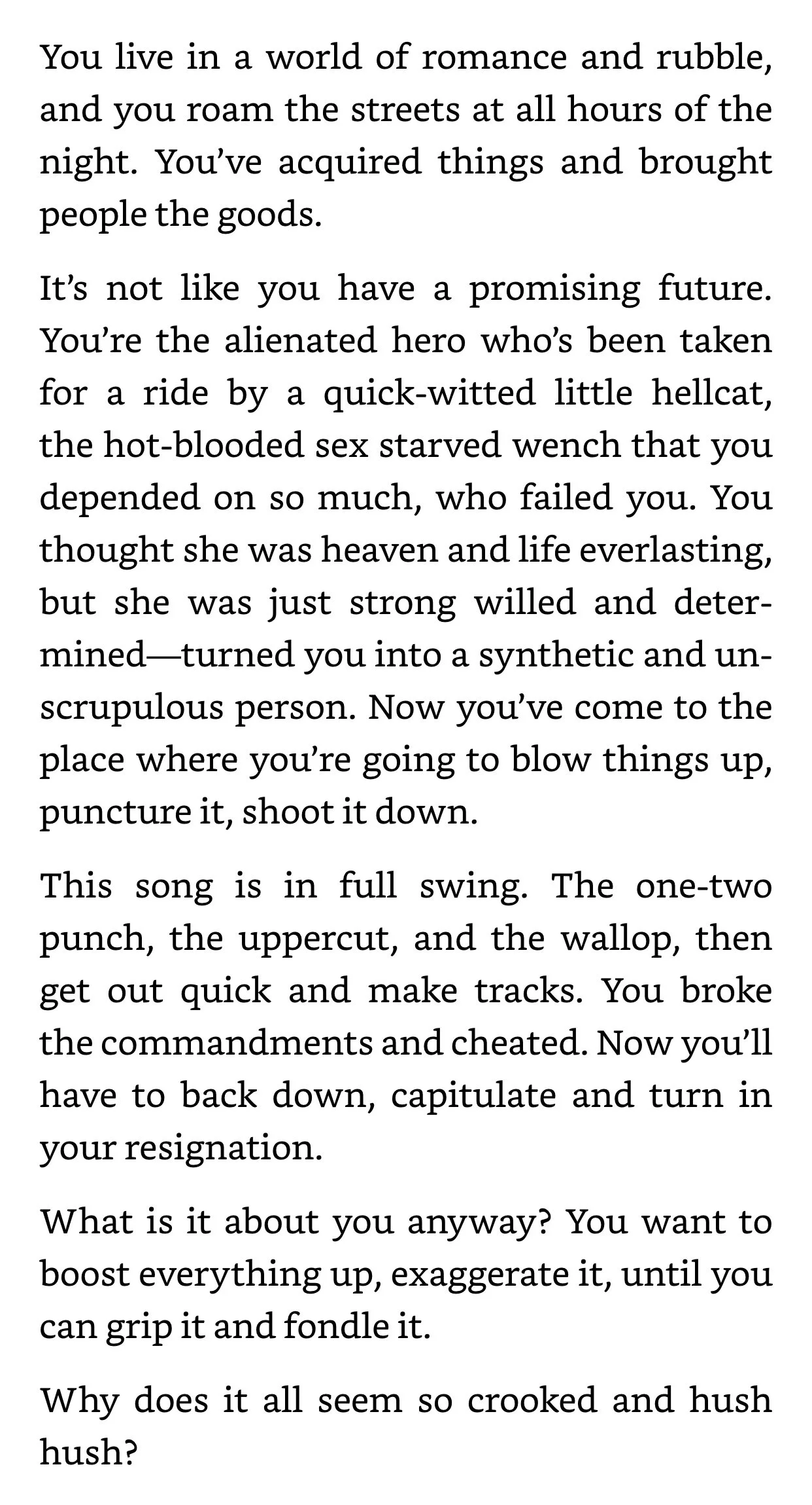 Let’s take a look at Bob Dylan’s words on Elvis Costello’s song Pump It Up, chapter number 2.