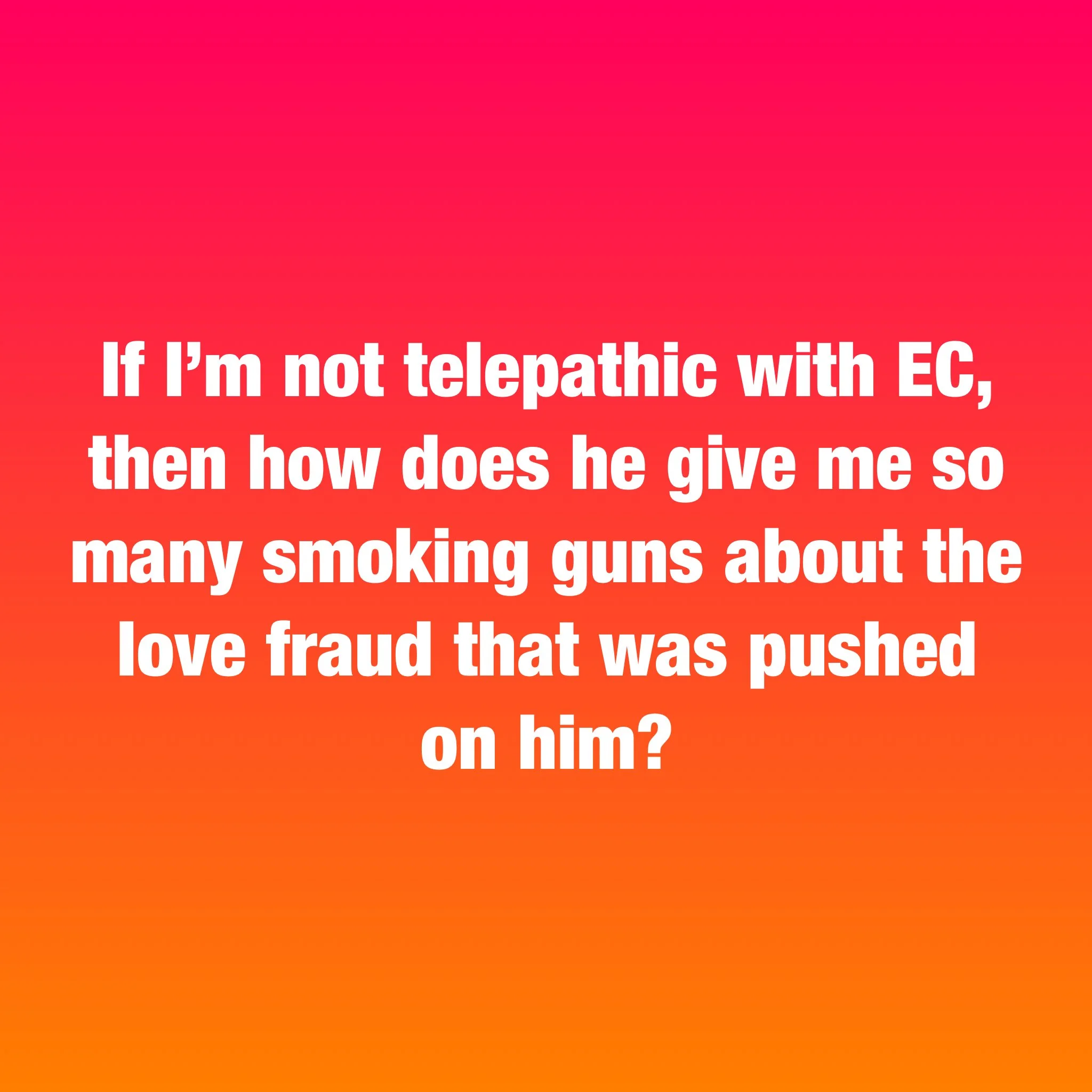 I have been demoralized pretty much every day of my life and that is why I have been doing everything to make people see what has been done to me (AND US) and that EC - has been weaponized against me and himself due to various tricks and threats, many of them financial in origin.