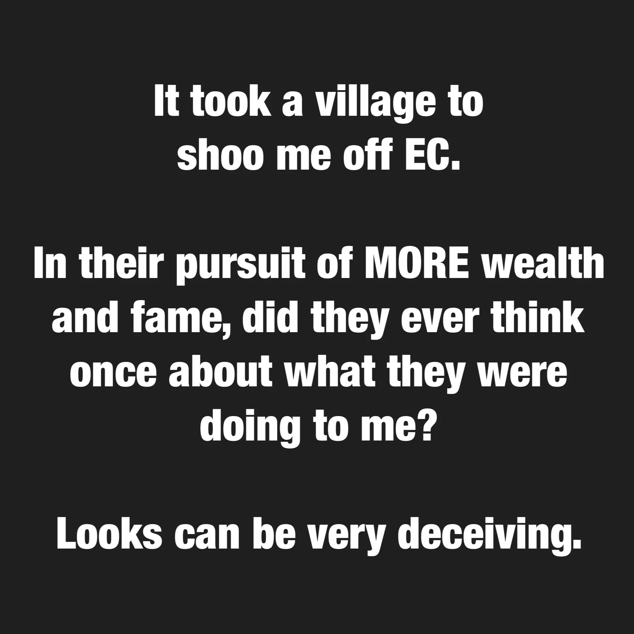 They shut down my life before I could begin it. They let EC have his “career”. Hopefully we can see what that really is all about now. He had to get arrested just to get started!!! We were both trapped on opposite sides. Coincidence? He is literally NOT PERMITTED to communicate with me nor are any other people “over there” allowed to openly acknowledge me.