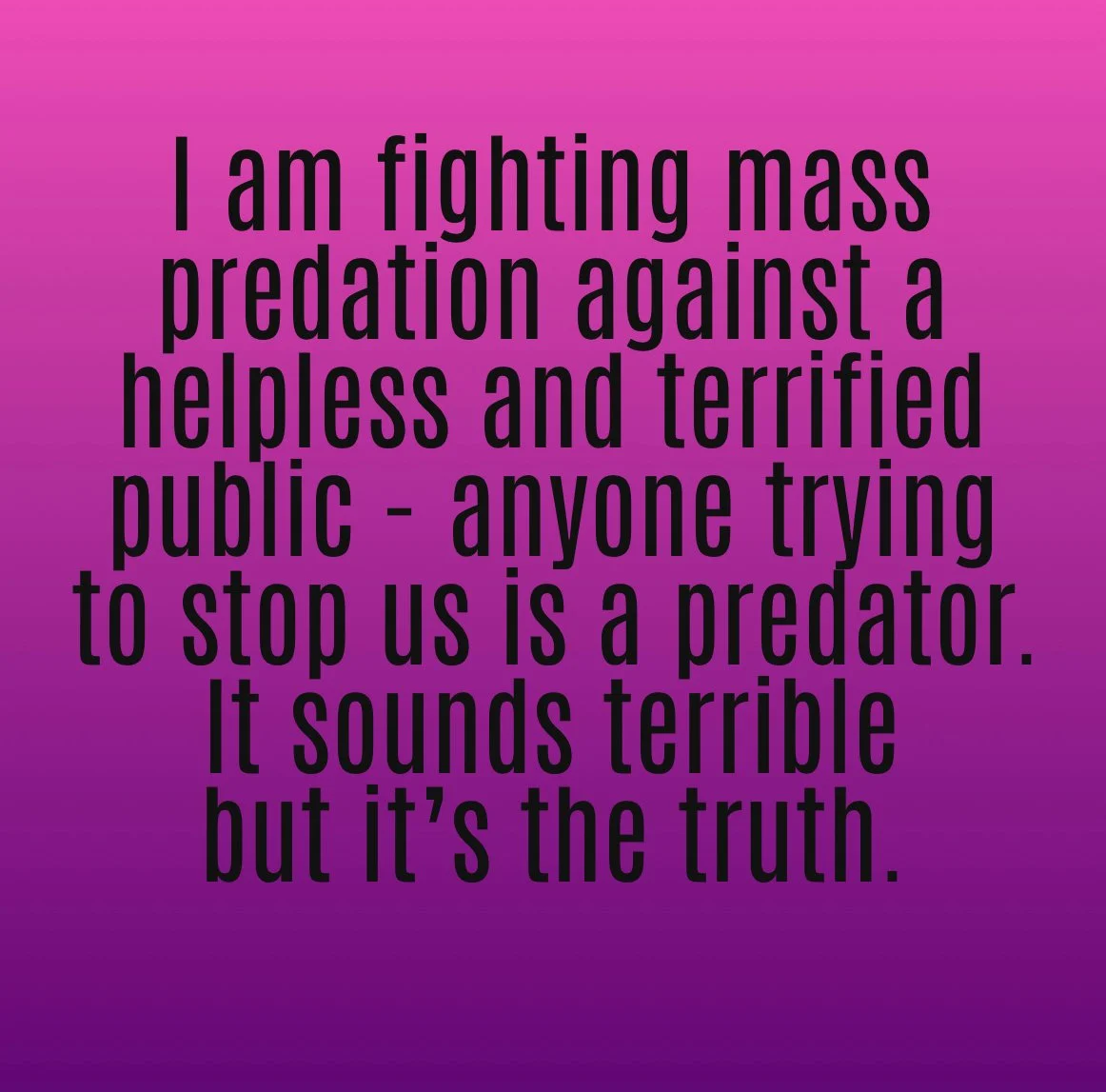 I am doing this to help us. All of us. Even the ruling class. I have been trying to set you all free as well. I hope you will see that your best interests are exactly the same as my best interests. Just like you I am not very happy with the present situation and I want the right to love the person who loves me. I want the freedom to engage in fair commerce. I want the freedom to associate with someone who wants to associate with me. He has many responsibilities and it is cruel to financially destroy someone for no longer wanting to risk their soul! Eternity is a long time and how will he be there with me if he keeps betraying himself and humanity? Where will you spend eternity based on your behavior right now?