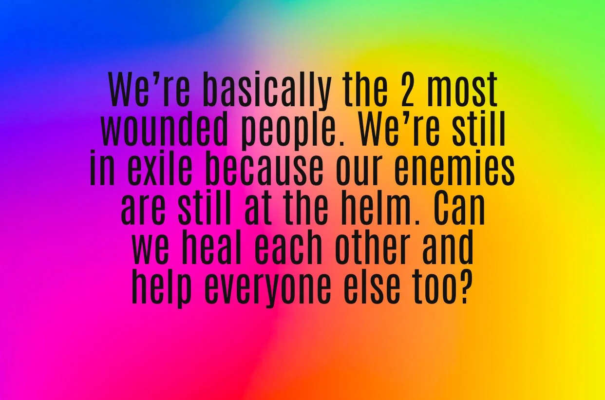 We have everything in common (yet we’re totally different) and we are from the 2 opposing sides in this world - the collaborators and the people. If most of the collaborators would flip we could get free and we could move on to a much much happier world and I’m sure we could work something out if we were all operating in good faith. Finally.