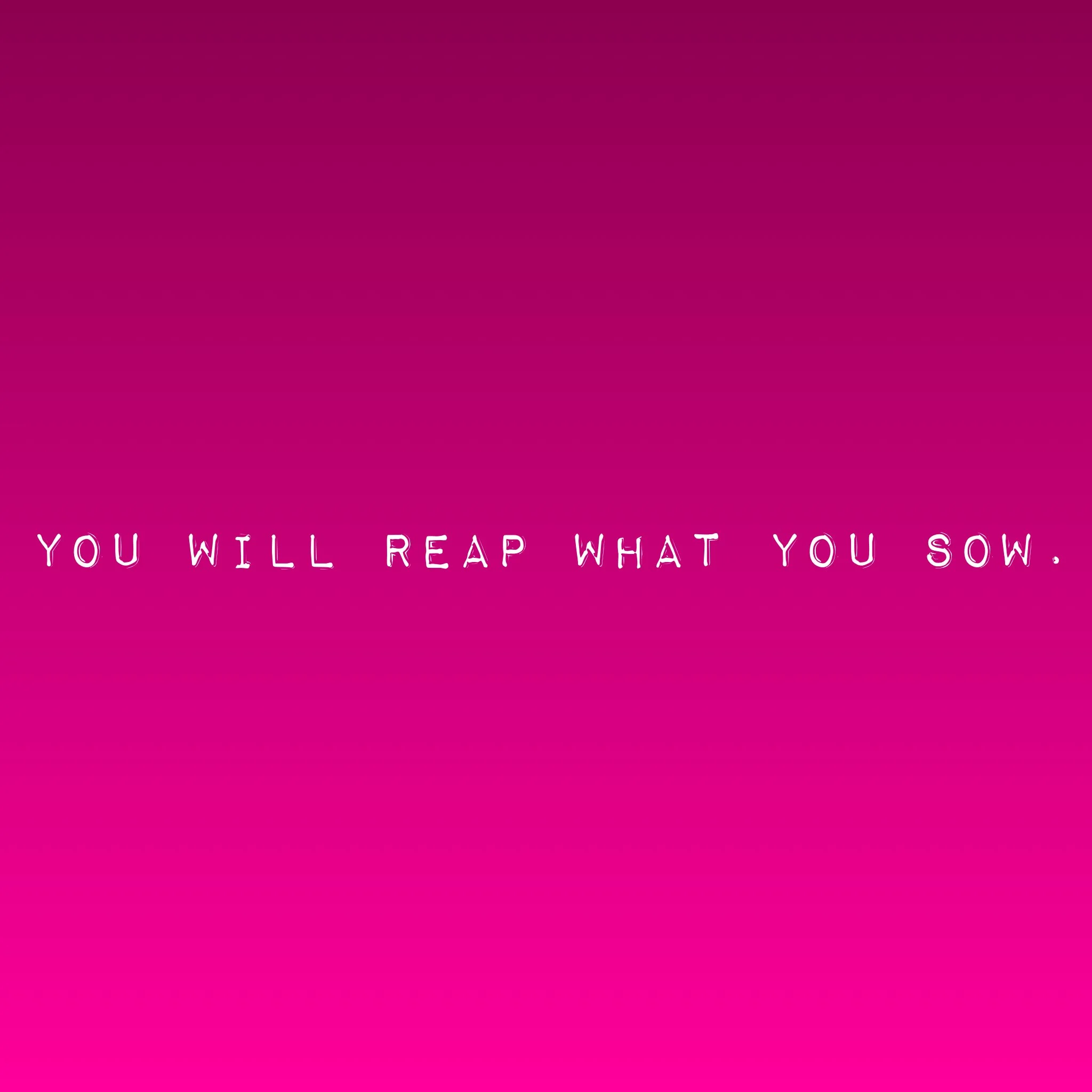 You're going to reap just what you sow