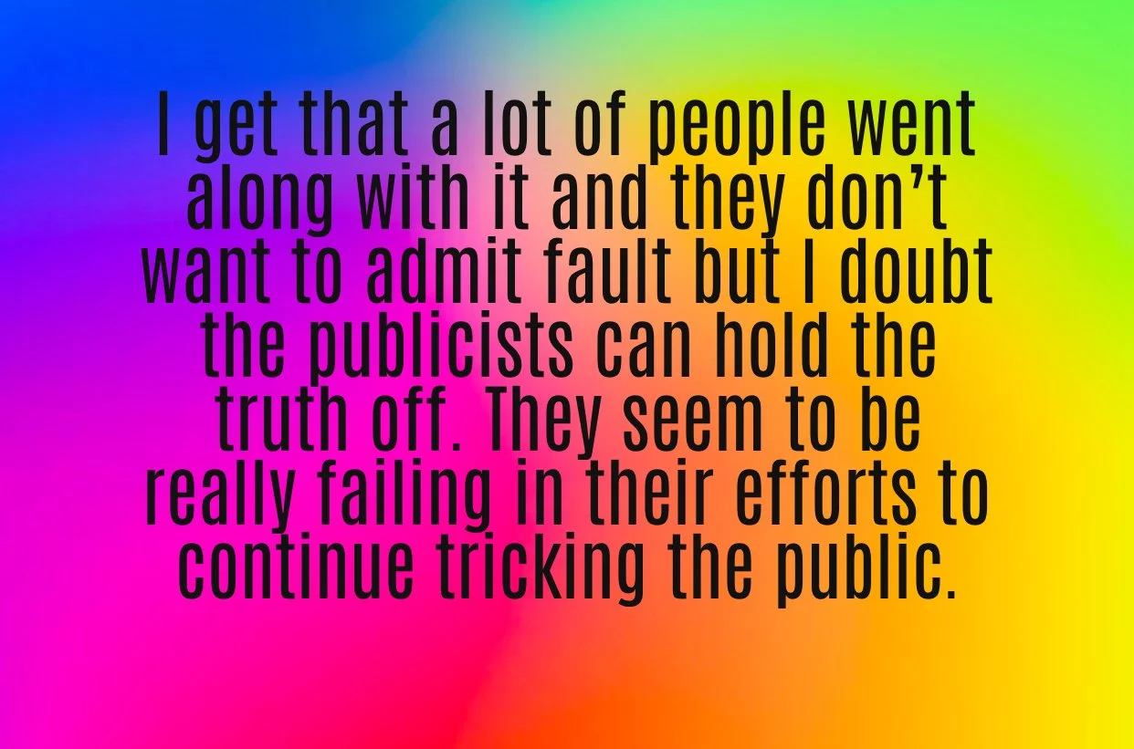 The damage control tactics that publicists have are not in proportion to the massive crime that they are working so hard to cover up and obscure. We are just watching crimes in progress now.