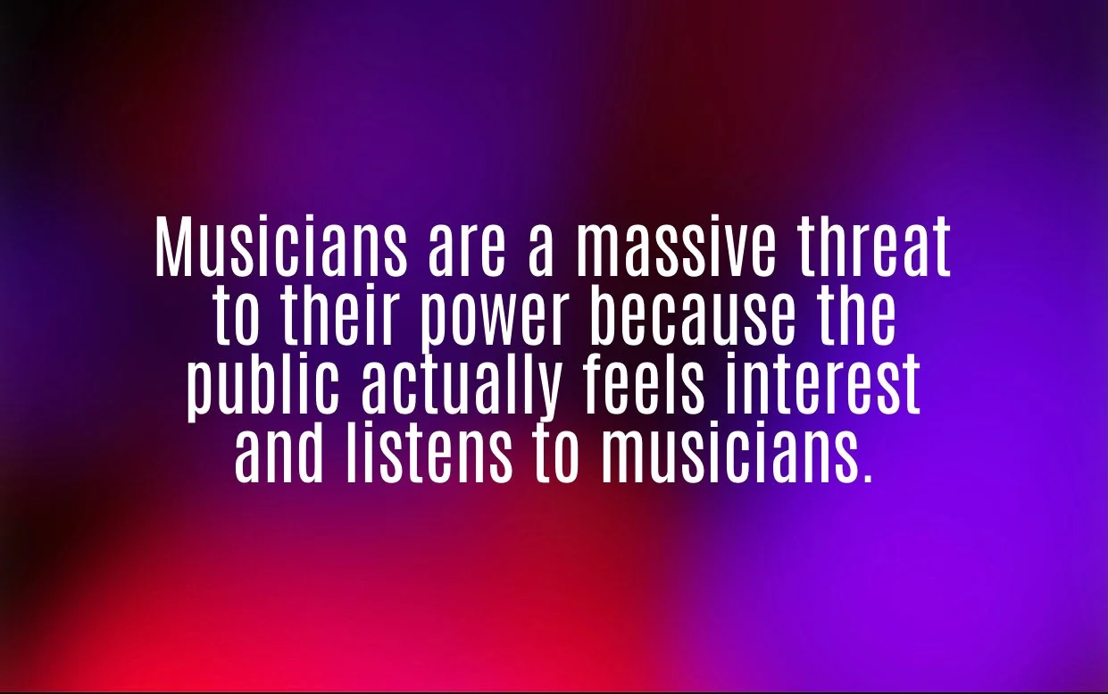 This is why controlling musicians becomes such a priority for the secret society puppeteers. Musicians - if they clean up and embrace some genuine heroism - can be a huge solution in this world. A lot of hypocrisy has been revealed but we can still turn that around. It’s not too late. Evil triumphs only with a lot of help.