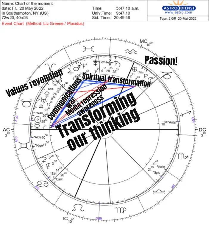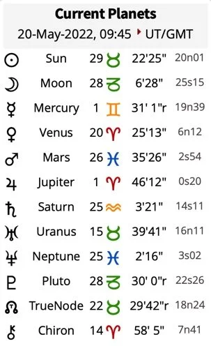 May 23, 2022 7:05 AM Sun 2 Gemini 18 sextile Jupiter 2 Aries 18