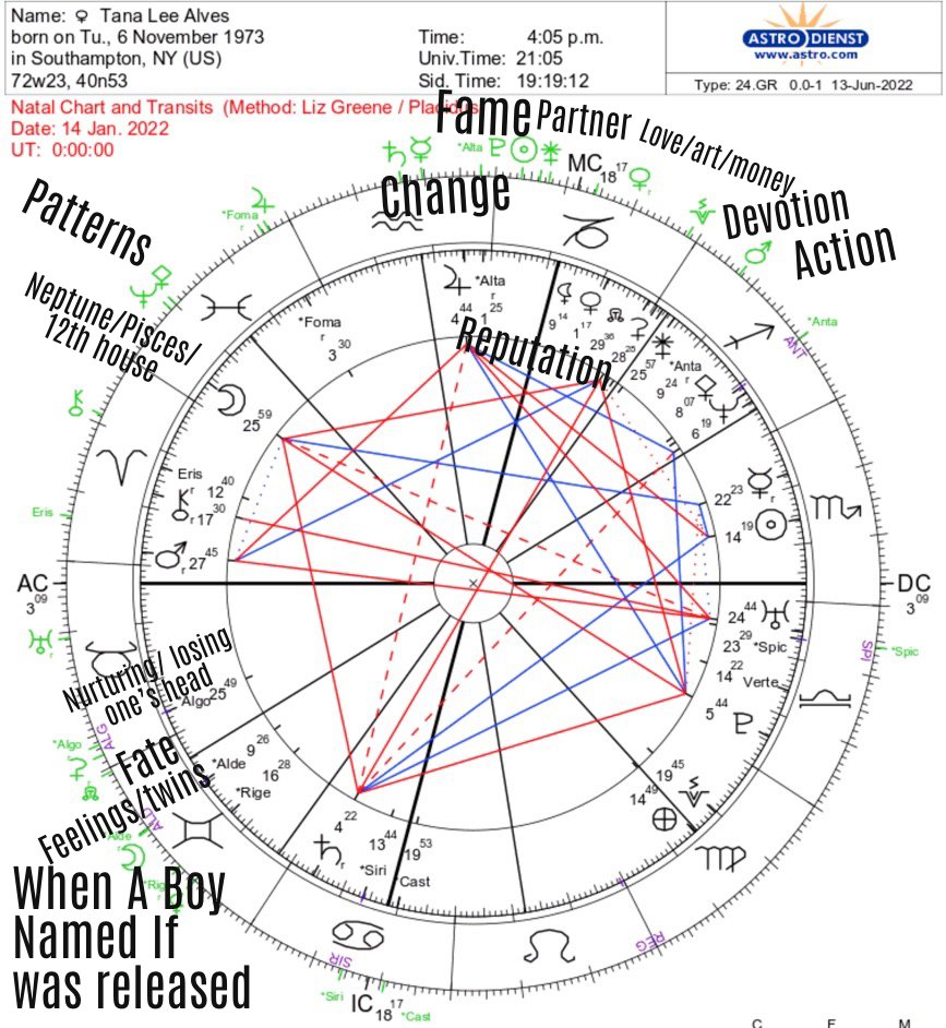 On the stream, I’ve been discussing how listening to the album A Boy Named If indicated to my mind that I could speak telepathically to Koand. I’m showing here how the planetary transits of that time show that January 14, 2022 would be likely to signal significant changes to my personal relations and reputation.