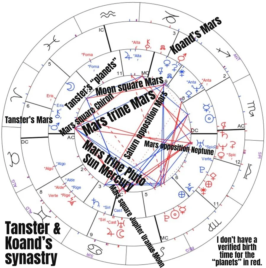 Let’s look at Mars in the synastry chart of Tanster & Koand. I’ll post relevant data pertaining to Koand’s Mars in Capricorn. We’ll just focus on that Mars today: