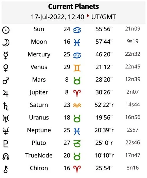 Venus is in Cancer from July 17-August 11, 2022. In Cancer, Venus is nurturing, protective and self-protective, cautious, and fertile. We experience many emotional ups and downs in love under this influence due to our increased sensitivity and impressionability. We are tender, romantic, and attached. Cancer love is dedicated, warm, and devoted. We show our love through our devotion, care, and concern. We are affectionate and cuddly, and are at our best when we feel safe and secure.