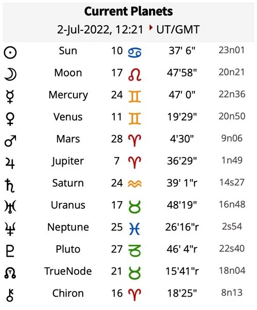 On tonight’s stream, I’d like to focus on Koand’s Venus and Neptune in the synastry chart posted above. Relevant data is collected below and hyperlinks to the information sources are in red: